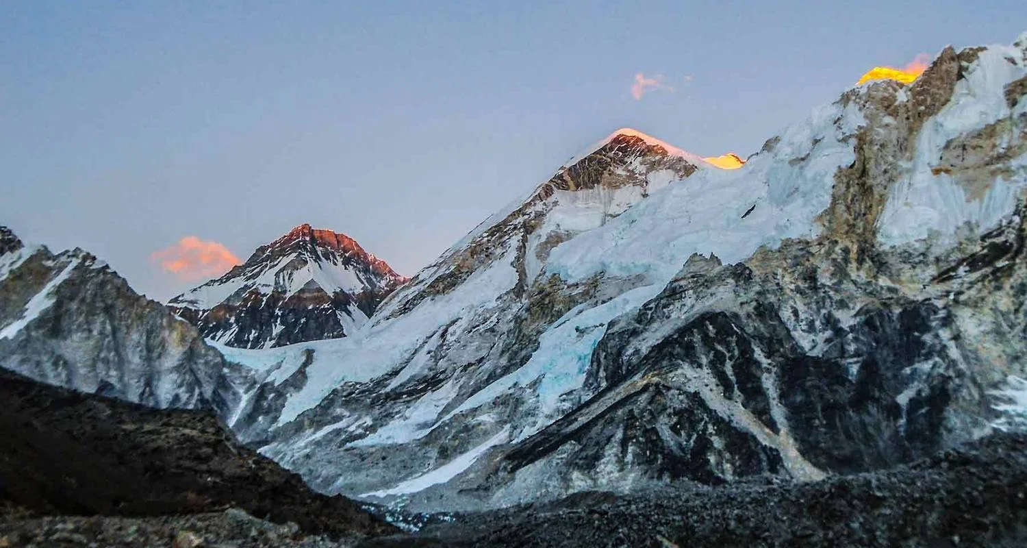 Continuing our climb, we are treated to a panoramic vista of the Khumbu Glacier and the Nuptse massif before reaching the rocky viewpoint of Kala Patthar. It's a challenging ascent, but each meter gained offers more of Everest and the stunning Himalayan panorama. Sitting atop the Kala Patthar rocks, we immerse ourselves in the awe-inspiring scenery.