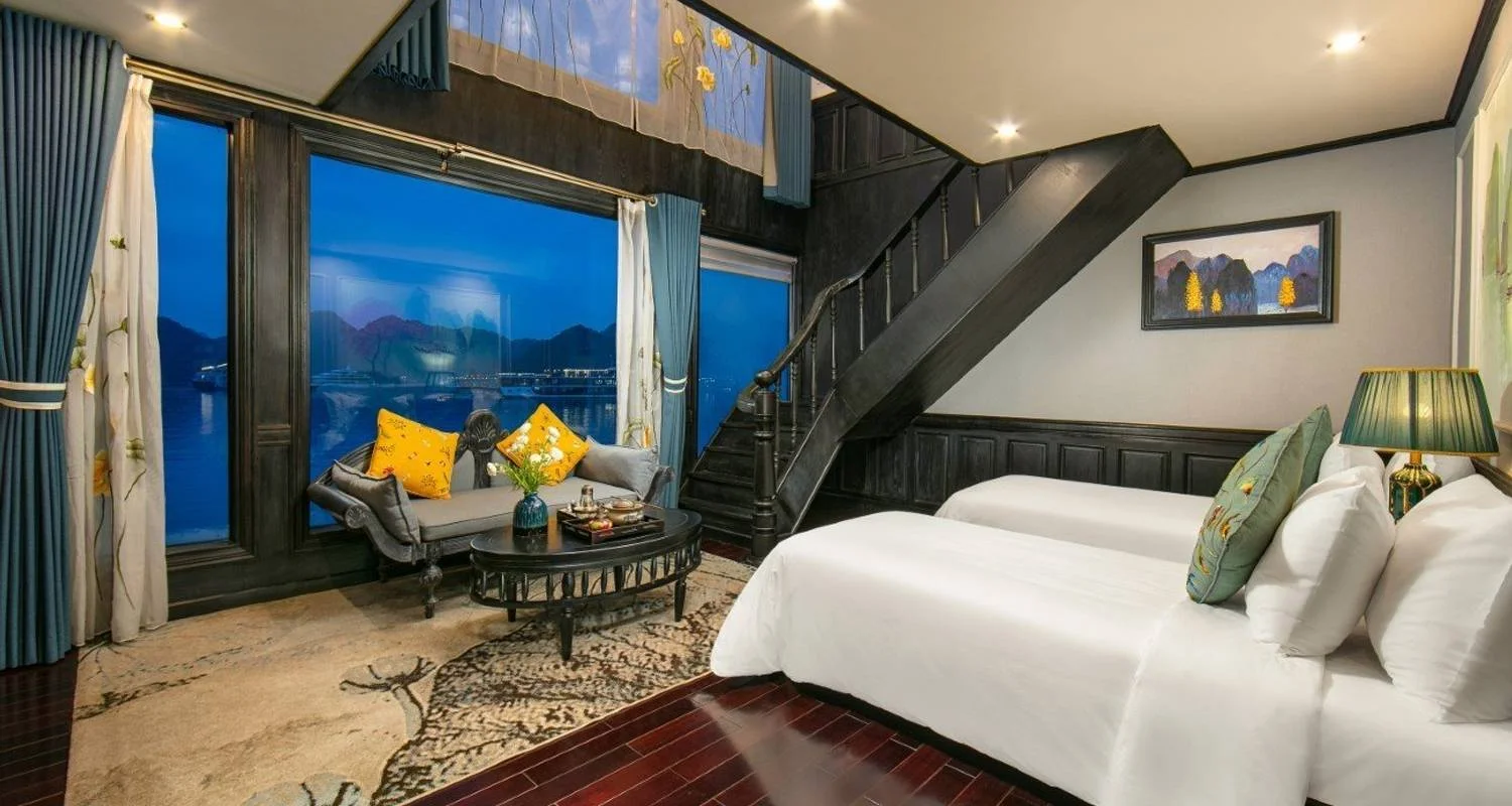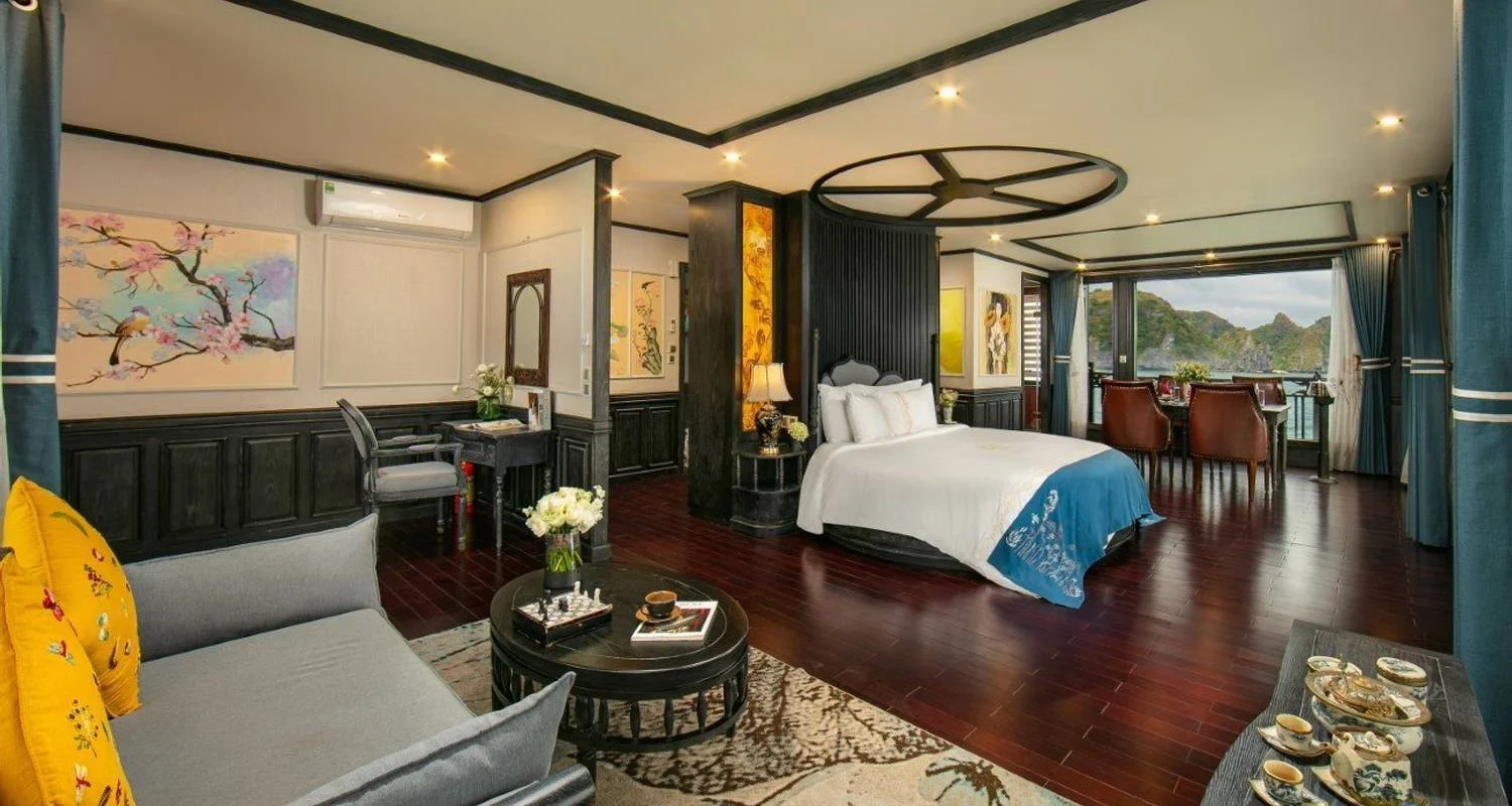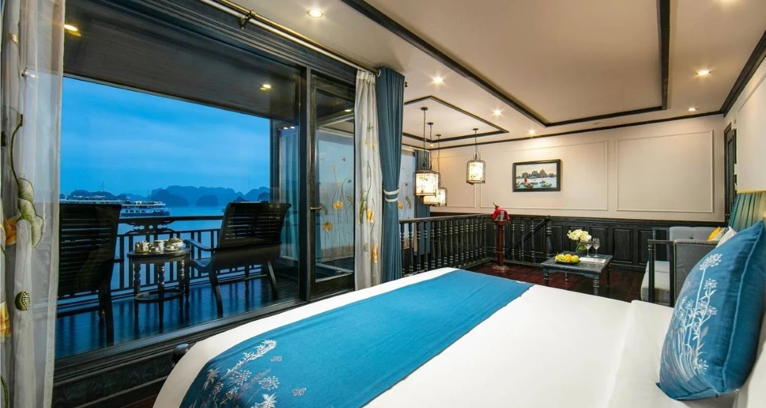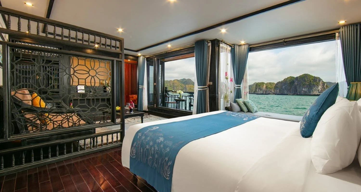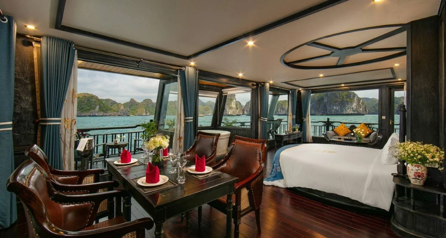 19:00 PM: Enjoy a delectable dinner on the sundeck (weather permitting) or in the elegant Ha Long Bar & Restaurant. Savor exquisite dishes prepared with fresh, premium ingredients, blending traditional Vietnamese flavors with modern culinary innovations.