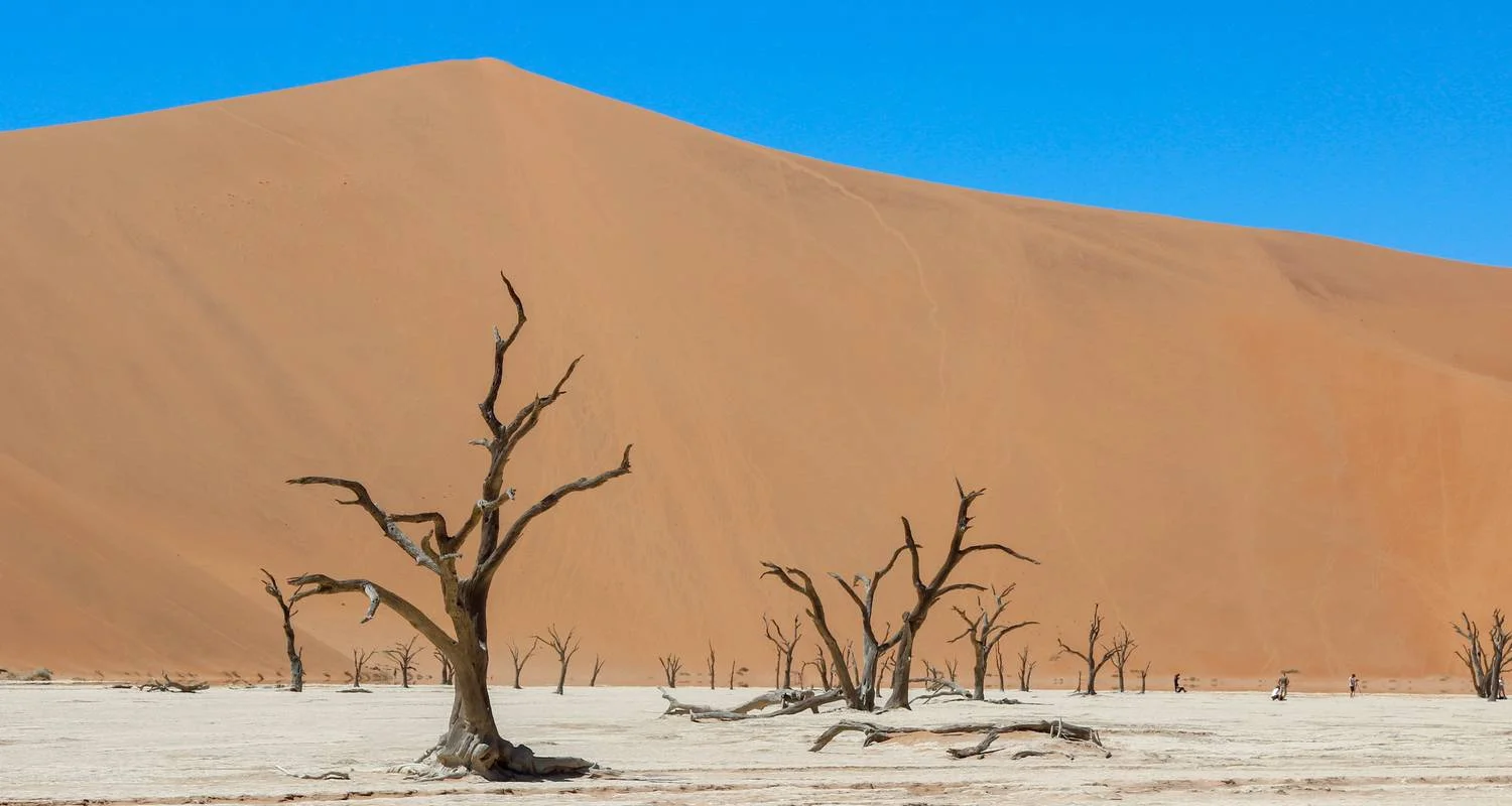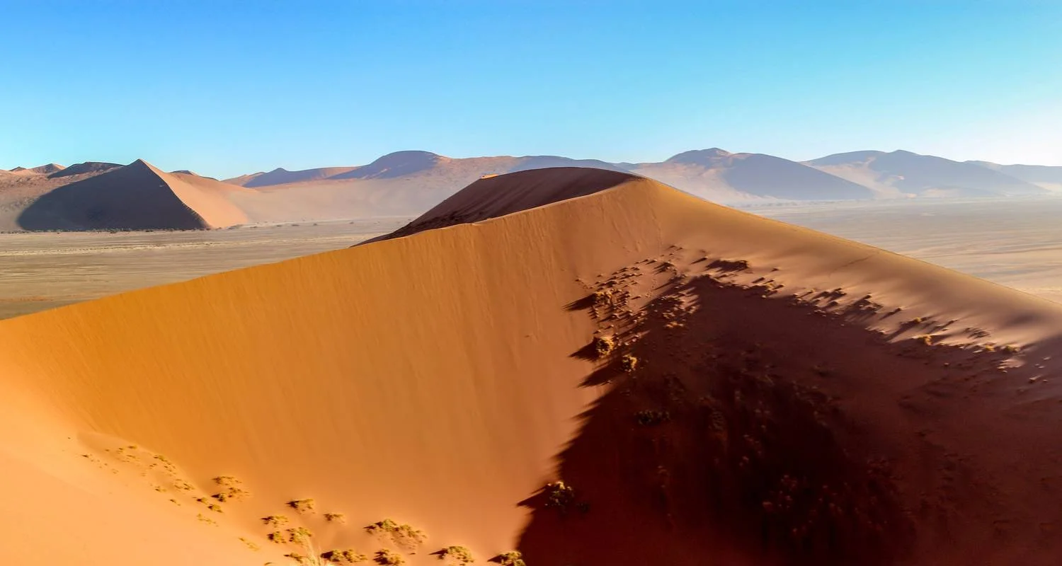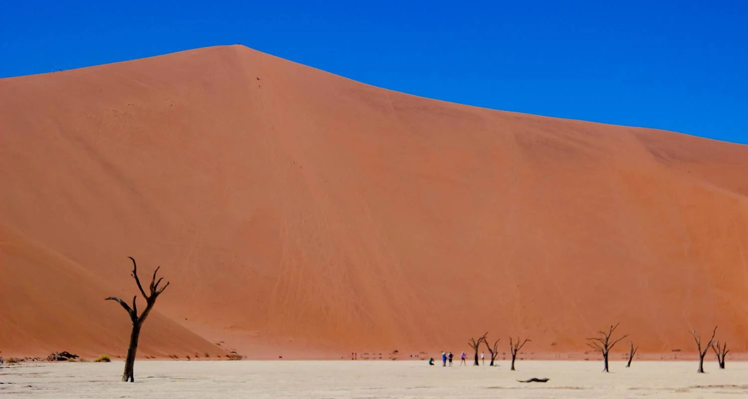 We then continue to the heart of Sossusvlei, a spectacular region of towering red dunes and stark white pans set against a deep blue sky. Here, we visit the famous Deadvlei, a striking clay pan dotted with ancient, skeletal camelthorn trees—an unforgettable sight and a photographer’s dream.