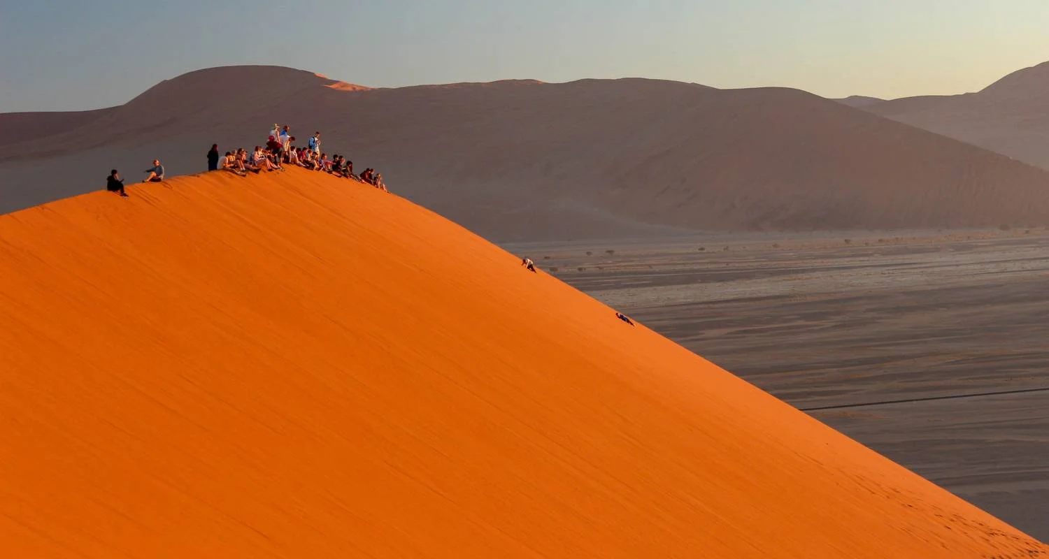 We make an early start to capture the soft light of sunrise over the desert. Departing our lodge before dawn, we head to the Sesriem entrance gate, ready to enter the park as soon as it opens at sunrise. In the cool morning air, we journey through the Namib Desert, keeping an eye out for wildlife such as gemsbok, springbok, and ostrich.