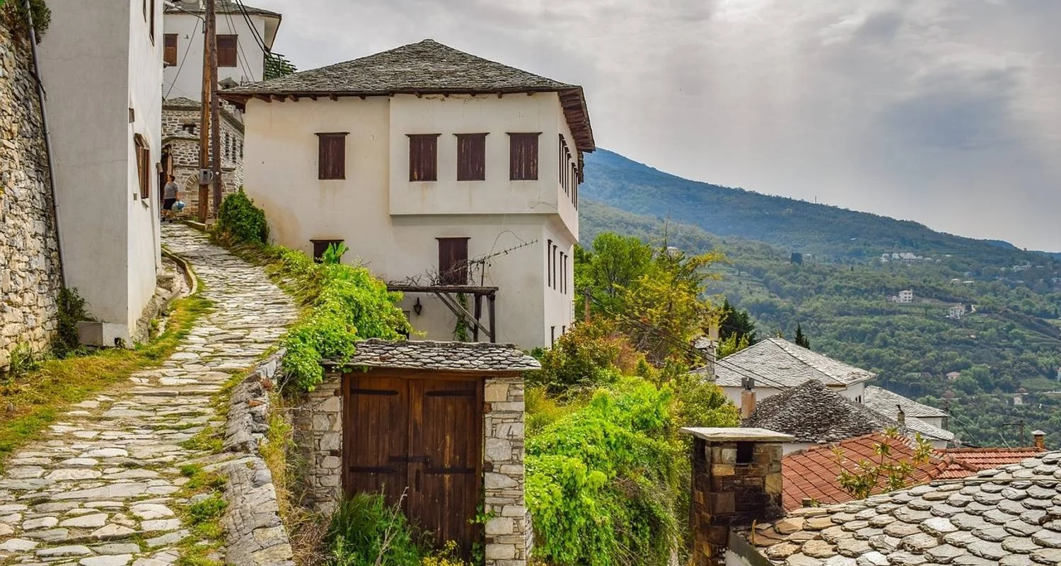 Afterward, journey to Mount Pelion, the legendary summer home of the twelve gods of Olympus, and visit Portaria, one of its traditional villages. Pelion captivates visitors with lush vegetation, charming villages, and an extensive network of mountain trails, all echoing the myths of the Centaurs. Check in and enjoy free time to wander the cobblestone streets, dine in local taverns, or follow the Centaurs Path marked by red circles, revealing breathtaking landscapes, fountains, and towering trees. Overnight in Portaria, Pelion.