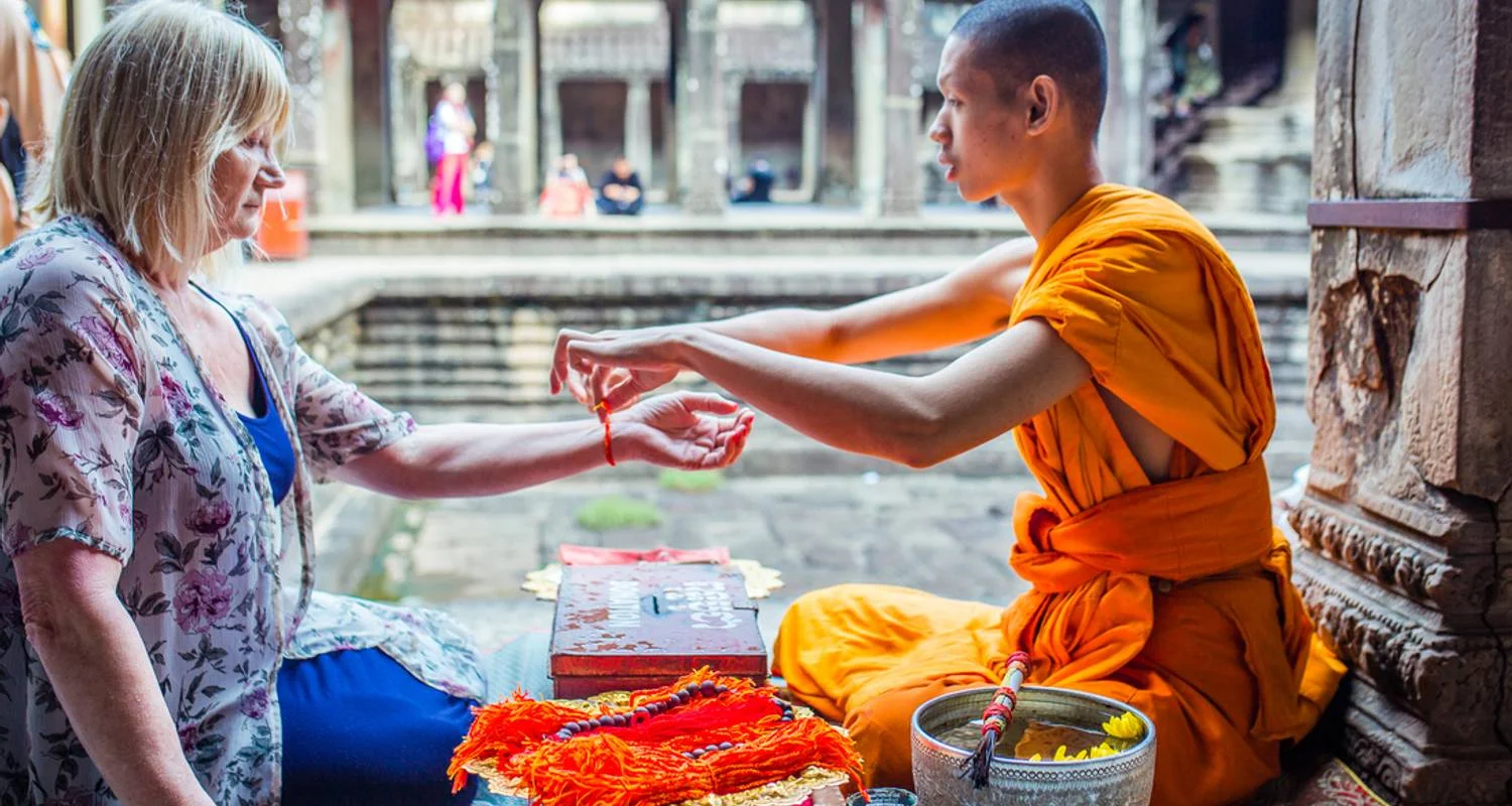 The cuisine of Cambodia includes a lot of meat and seafood. For vegetarians and vegans, we recommend reviewing the itinerary and inclusions to ensure that you will be able to participate and enjoy this trip fully. We also have many other trips to Cambodia that can accommodate various dietary requirements., Cambodia can get very hot, and even temple-hopping can take it out of you quickly. Remember to use sun protection and drink plenty of water., The bloody rule of the Khmer Rouge is a painful but essential part of Cambodian history to confront. If you would rather not visit the Tuol Sleng Genocide Museum (S21) and the Killing Fields of Choeung Ek, just let your leader know., You will visit several temples on this trip, and this requires a level of modesty. Be sure to bring clothes that cover the arms and pants or skirts that go past the knees. A light scarf is also a good idea for covering shoulders and arms when it's hot.