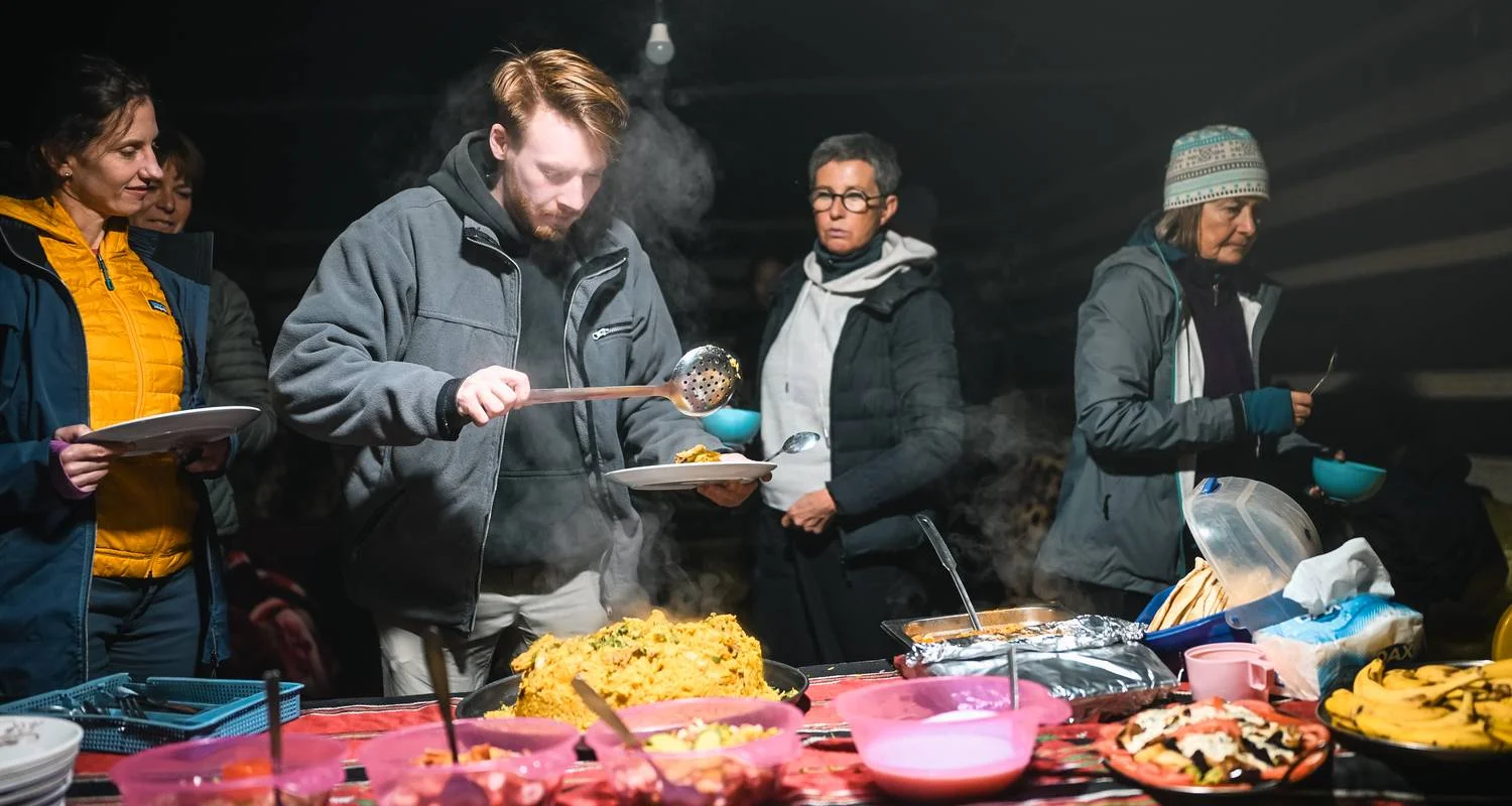 • Alle Mahlzeiten: Frühstück, Mittagessen, Abendessen und Snacks vom Frühstück am 2. Tag bis zum Frühstück am 9. Tag.