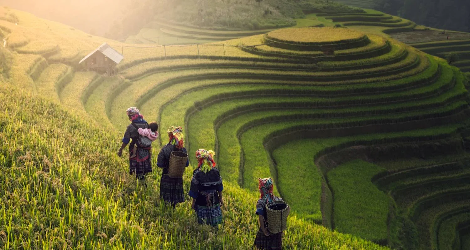 **Hinweis: Die Reissaison in Sapa ist von April bis Anfang September (August ist der schönste Monat, um die Reisfelder zu sehen, da der Reis gelb wird). Wenn Sie also außerhalb dieser Monate reisen, werden Sie die Reisterrassenfelder nicht sehen. Sapa ist jedoch nicht nur wegen der Reisterrassen attraktiv, sondern auch wegen der herrlichen Landschaft in den Bergen, der Bäche und der farbenfrohen Kleidung der Bergstämme.
