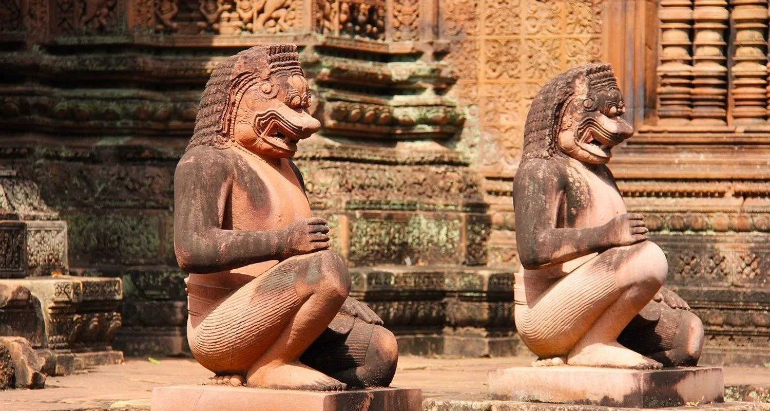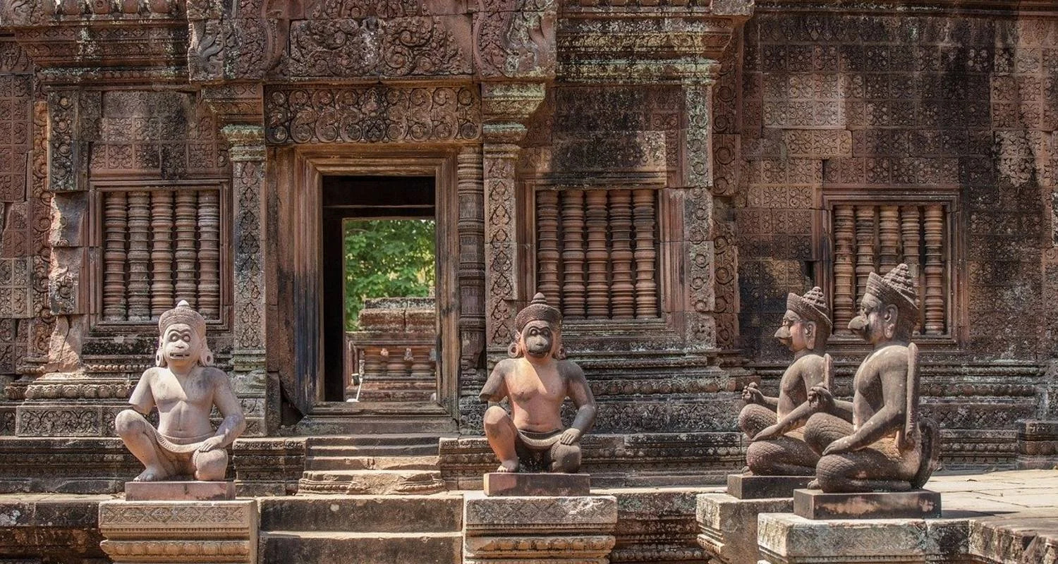Am Vormittag besichtigen Sie den gut erhaltenen und kunstvoll verzierten Tempel Banteay Srei. Auf dem Rückweg besuchen Sie am Nachmittag ein wunderschönes, kleines Bauerndorf und lernen dort die Lebensweise kennen. Im Anschluss halten Sie an einer Pagode für einen Mönchssegen (Wassersegen), ein ganz besonderes Erlebnis. Zum Abschluss des Tages können Sie einen unvergesslichen Sonnenuntergang am Wasserreservoir Srah Srang genießen und bestaunen, wie sich die Tempelanlage von Angkor Wat mit der untergehenden Sonne auf der Wasseroberfläche spiegelt.