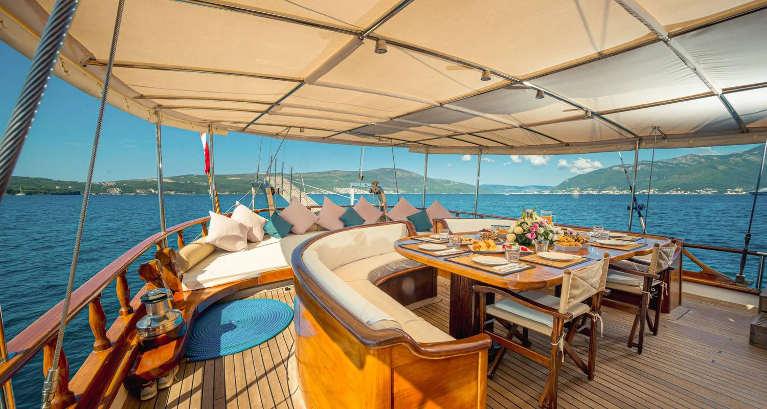 Beginnen Sie Ihren Morgen mit einem herzhaften Frühstück, gefolgt von einer geführten Tour durch die Altstadt von Kotor. Anschließend fahren wir in Richtung Süden und halten zum Schwimmen in der ruhigen Bucht von Dobra Luka an. Nach dem Mittagessen an Bord gönnen Sie sich ein weiteres Bad, bevor Sie im charmanten Fischerdorf Bigova anlegen. Das Abendessen nehmen Sie selbst ein und die Nacht verbringen wir entweder am Dock oder vor Anker.