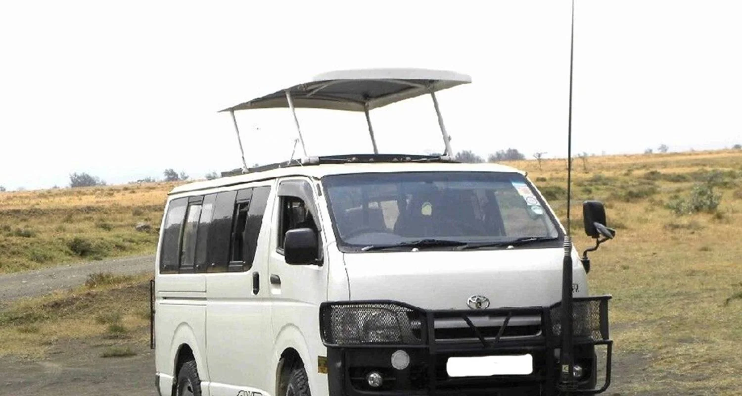 Transport in safari mini van with pop up roof for game viewing.