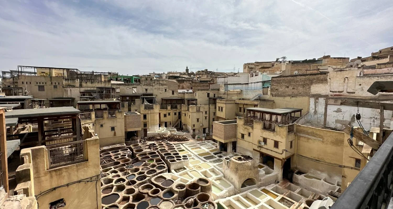 Next, a short walk down to the Madrasa Bou Inania. Fes’s finest theological college. We then take a walk inside the Medina Souks which is the oldest marketplace where Fes’smost special hand craft goods are all over the place. Our walk continues toward the Tanneries. One of Fes’ most iconic sights and a natural process of high-quality leather with almost the same methods since medieval times.