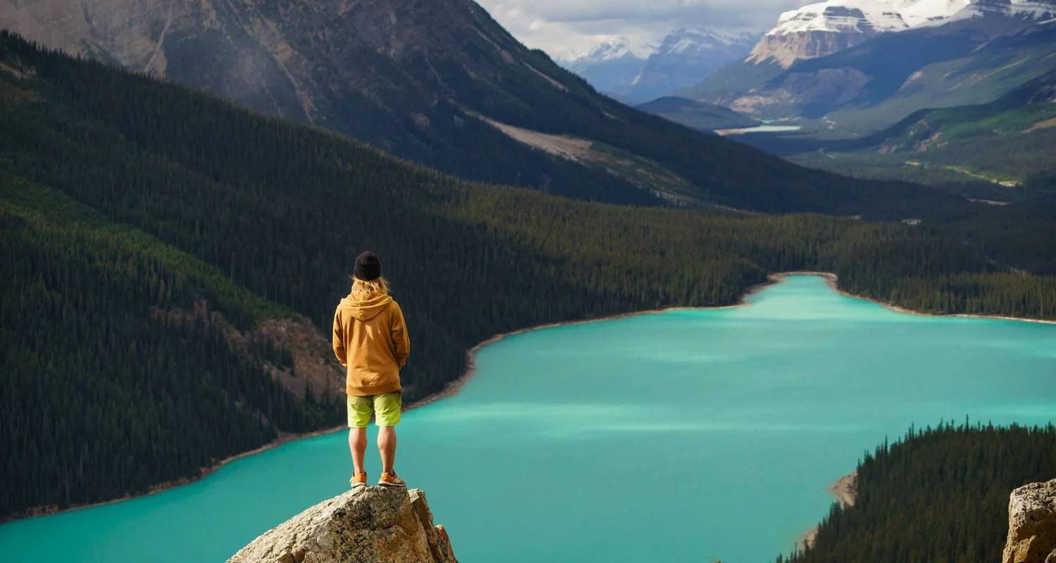 Peyto Lake is a glacier-fed lake located in Banff National Park in the Canadian Rockies. During the summer, meltwater from nearby glaciers carries fine rock particles, known as glacial rock flour, into the lake. These suspended particles scatter sunlight and give the lake its striking turquoise color, a vivid example of the interaction between glaciers and the landscape. (stop for about 20 minutes) / (It will be replaced by Waterfowl Lake if it is closed)