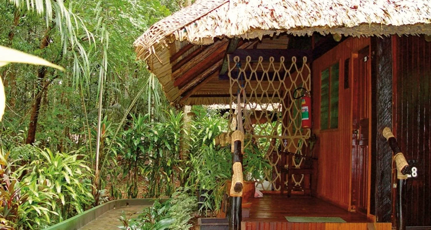 Transfer back to Manaus, either to the separately booked hotel in Manaus or to Manaus airport with arrival around 11:30 a.m. (book flight from 12:30 p.m. (national) at the earliest). (Breakfast). Accommodation information. The 21 buildings covered with palm leaves are made of Brazilian precious woods and consist of a main building with restaurant, bar and lobby. The functionally furnished rooms are located in 2- or 3-person bungalows, all with shower/WC, veranda, some with hammock. The lodge has limited electricity and no hot water.