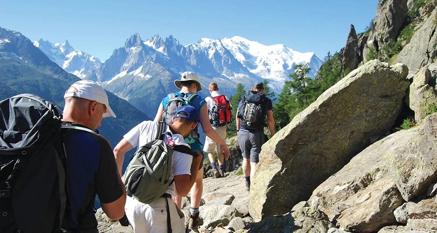 The trip starts today at our Alpine chalet-style hotel in the village of Les Houches in the Chamonix Valley. Our tour leader plans to meet everyone in the hotel reception at 6pm for a welcome meeting. Afterwards, we'll enjoy an included dinner together at the hotel. Our home for the week is Hotel du Bois. With a relaxed atmosphere, an indoor swimming pool, a sauna, and gardens with views across the Mont Blanc range, it is the perfect walkers' base. There's a cosy bar and restaurant serving local specialities and homemade dishes. We don't include an arrival transfer on this tour but it's easy to reach our joining hotel in Les Houches independently. The easiest way to get from the airport to our hotel is via the Mountain Drop Offs shared shuttle bus service, which departs regularly from Geneva Airport throughout the day and takes just over an hour. The shuttle will drop you at the door of the hotel, tickets cost €50 and can be booked online at https://www.mountaindropoffs.com/. If you miss the welcome meeting, our tour leader will inform you of any essential information as soon as you catch up. Please note that the official check-in time at the hotel is from 3 pm, although rooms will be allocated as soon as they are available. If you arrive earlier in the day and would like to explore, the lively centre of Chamonix, with its many shops and pavement cafes, is just 15 minutes away by local bus.