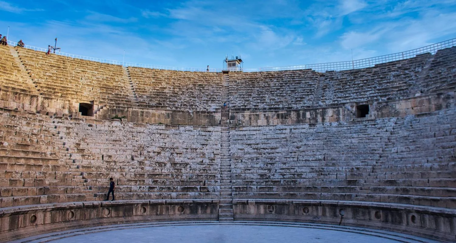 Today, embark on a journey north to explore the ancient Roman city of Jerash, a vibrant historical site established during the era of Alexander the Great. Jerash thrived for over a millennium as a significant trade hub positioned between Damascus and Petra. The city's colonnaded thoroughfares remain largely intact, alongside the magnificent oval forum and the grand gateway commemorating Emperor Hadrian's visit. Marvel at well-preserved remnants including the theatre, temples, baths, and hippodrome, with stunning Byzantine mosaics from the early Christian era. Savor a delectable lunch at a local eatery in Jerash. The adventure continues in Amman, the bustling capital of Jordan, characterized by its lively quarters, hospitable locals, and exquisite cuisine. Start at the citadel for panoramic views and delve into Roman and early Islamic ruins. Just below, the ancient Roman theatre, constructed during Emperor Antonius' reign, remains a hub for cultural performances, nestled within modern Amman. Stroll through the bustling markets, perhaps pausing at a quaint café to indulge in street views, observe locals in leisure, and sample Arabic coffee and sweets. This is an opportune moment to experience the aromatic realm of argeelah or hubbly bubbly. Conclude the day with an overnight stay at a Bedouin Camp in Beida.