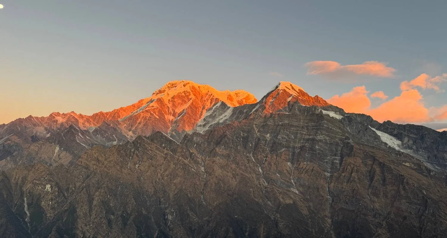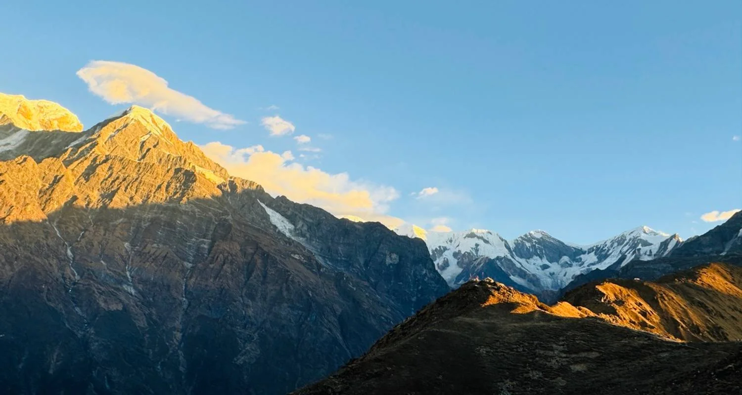 The path passes through a range of environments, from rocky, difficult terrain close to the base camp to lush rhododendron woods at lower elevations. Trekkers are treated to breathtaking dawn and sunset views throughout the route as the snow-capped peaks sparkle in the gentle light.
