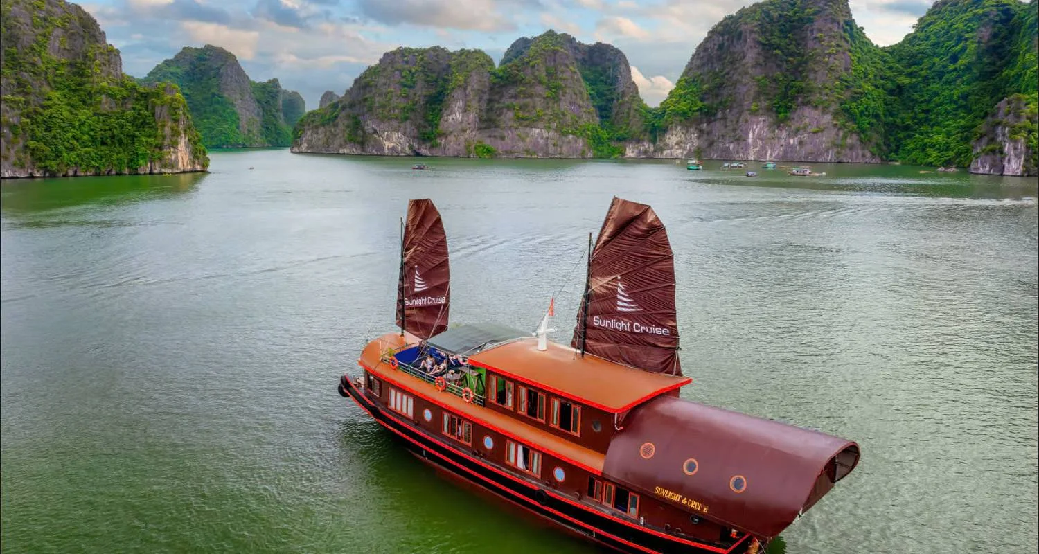 After breakfast, drive to Cat Ba Island, and board the junk. This junk is equipped with comfortable cabins, to discover the famous bay of Lan Ha in an original way, away from the tourist routes. Boarding and welcome drink. You take the course towards the southwest: you sail in the middle of thousands of sugar loaves emerging from the waters of the Gulf of Tonkin. A seafood lunch is served, followed by a moment of relaxation on the deck of the boat, while the crew cuts the engine to hoist the sails... (wind conditions permitting). You enter Ong Cam Bay. From there, kayaks are at your disposal for a short trip in the surroundings. Dinner and overnight on board the junk.