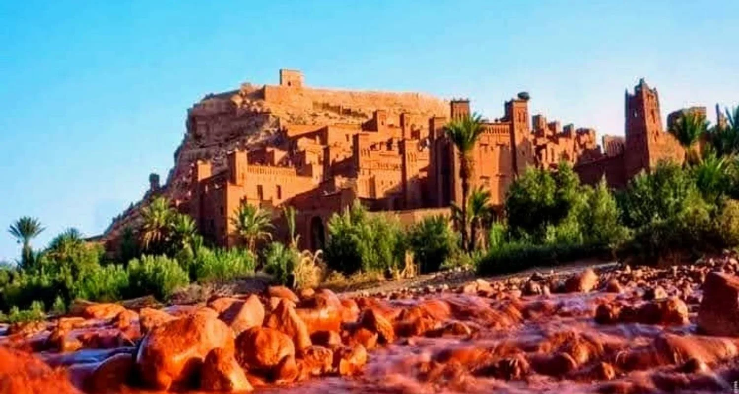 Embark on a scenic drive to Ouarzazate via the breathtaking Dades Gorge and Oasis. Pass through the picturesque city of roses, Kalaat M’Gouna, and the lush Skoura Oases, where you'll visit the historic Amridil Kasbah. Explore the fascinating world of cinema with a tour of local film studios. Conclude the day with dinner and an overnight stay in Ouarzazate.
