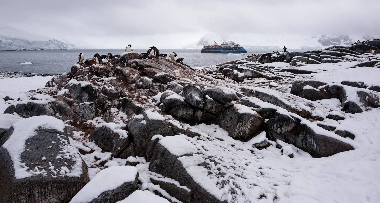 The Gerlache Strait, consisting of the 'spine' of the Antarctic Peninsula and a large number of mountainous glaciated islands, offers a plethora of iconic Antarctic experiences. From Zodiac cruises in Paradise Bay, to witnessing penguins nesting on Cuverville Island, each potential stop promises awe-inspiring encounters. Explore historic huts at Damoy Point, witness humpback whales feasting on krill in Wilhelmina Bay, and marvel at the jaw-dropping scenery of the Lemaire Channel. Wherever we go on the Antarctic Peninsula, endemic wildlife, tantalising history and breathtaking natural beauty can be found at every turn.