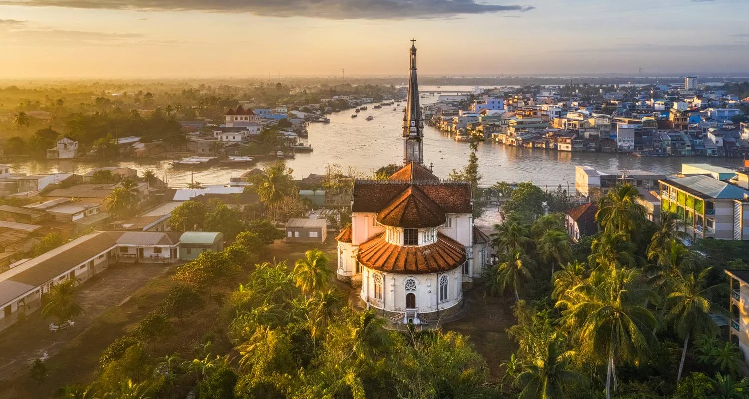 Journey by small tender boat past floating fish farms to Sa Dec, where French writer Marguerite Duras met her Vietnamese-Chinese lover, Huynh Thuy Le. Tour his former home and learn the story behind Duras' best-selling novel, ‘The Lover’. Afterwards, visit a traditional Cao Dai temple. Return to the ship and sit down to a delicious lunch while you cruise towards Cai Be. Board your tender boat, where you'll visit French gothic Cai Be Church and the port area. Then, visit a rice paper manufacturer to learn how this Vietnamese staple is made.