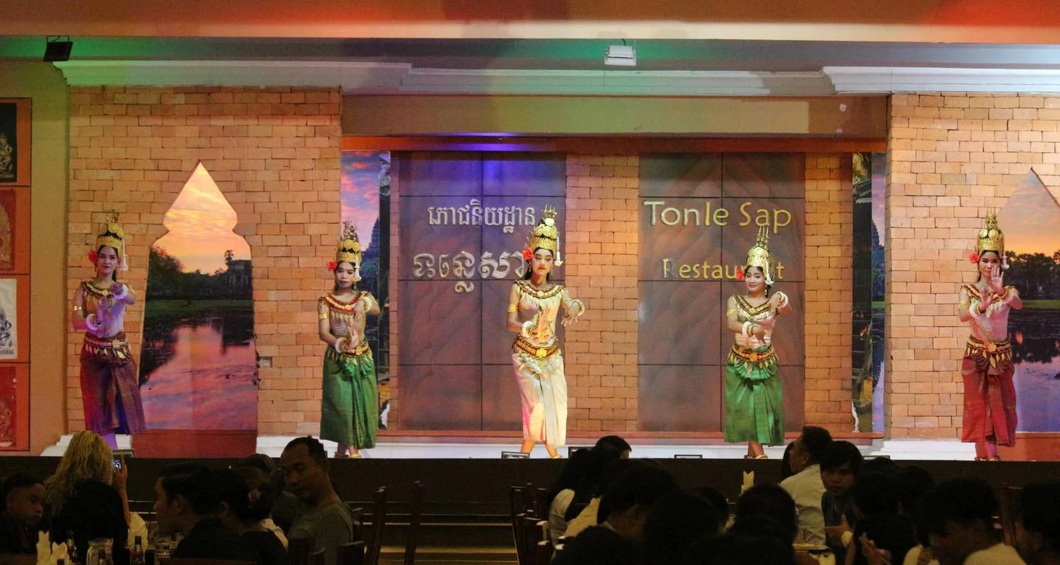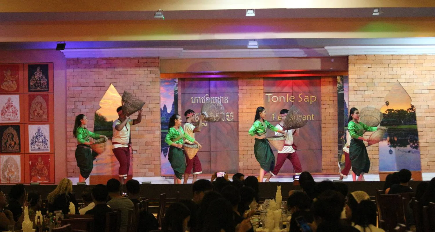 Khmer houses. Arrive back at the city around 6:30 PM. at this time the driver will drop you off at the restaurent to watch a traditional Apsara dance show to experience an authentic folk art from Cambodia.