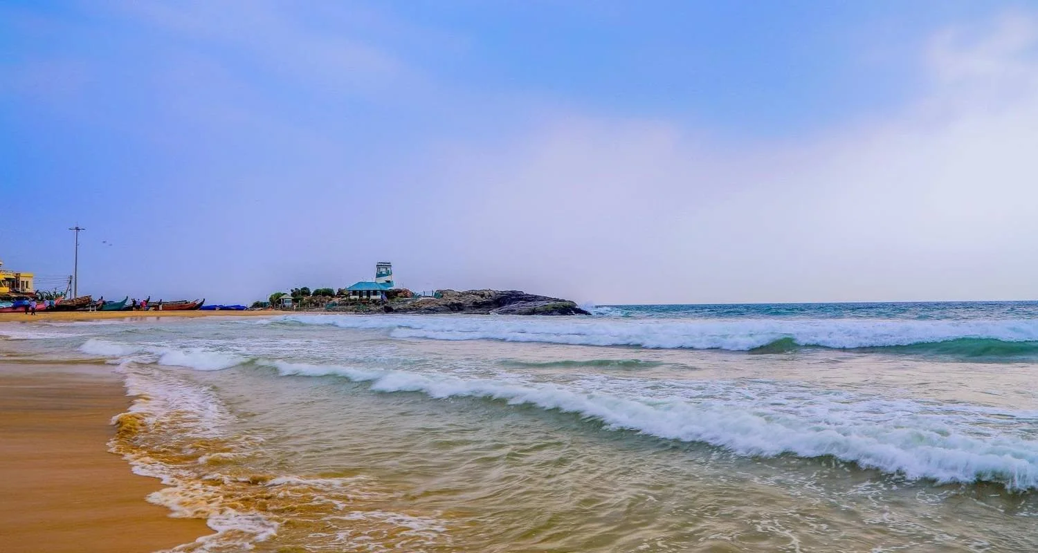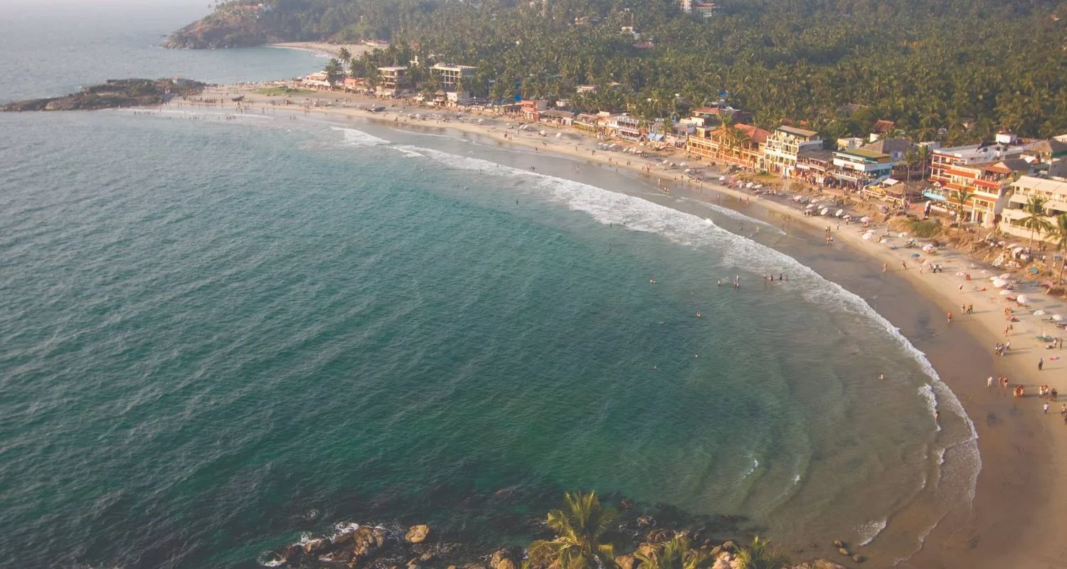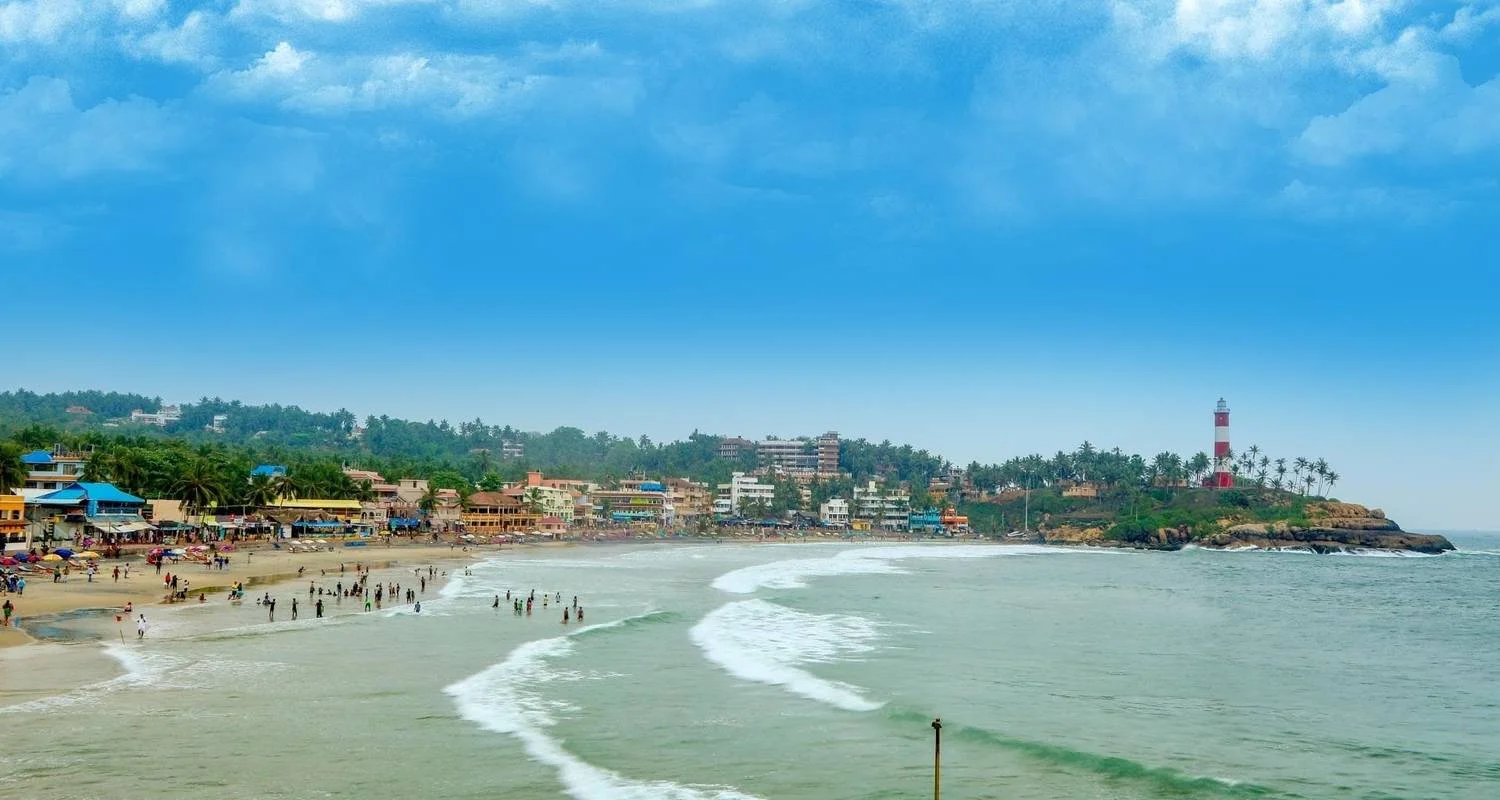 Conclude your day of exploration at the enchanting Kovalam Beach, where golden sands meet the gentle waves of the Arabian Sea. Relax on the pristine shores, take a refreshing swim in the crystal-clear waters, or explore the bustling beachside shops and cafes, offering a perfect blend of relaxation and entertainment against the backdrop of stunning sunsets.
