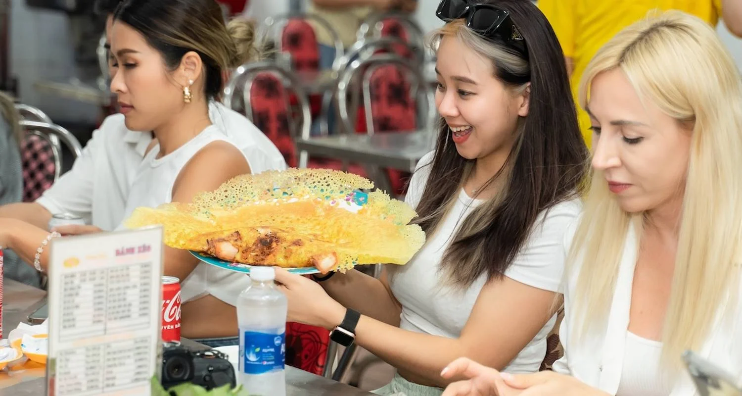Saigon Food Tour – Saigon by night will begin at 17:30. We designed this 3,5 hours tour for you to enjoy a wonderful evening in Saigon. You will travel to non-tourist destinations and see the real life of local people. This four hours on the back of our own scooters will take you through districts 1, 2, 3, 4, and 10 where you will see the local’s activities in the night time. And guess what, we're gonna sample 10 different dishes during this food challenge. Overnight in Saigon.
