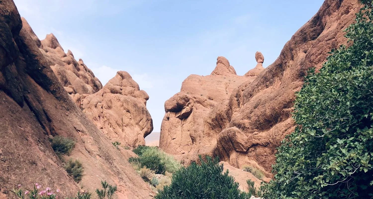 A continuación, nuestro camino continúa hacia Tinghir, un antiguo lugar de comercio para las caravanas hace muchos cientos de años. A pocos kilómetros de la ciudad, llegaremos a las Gargantas de Todgha. Una formación rocosa natural de cañones de 300 metros que forman un camino de piedra caliza lleno de agua procedente de las raíces de las montañas del Anti-Atlas.