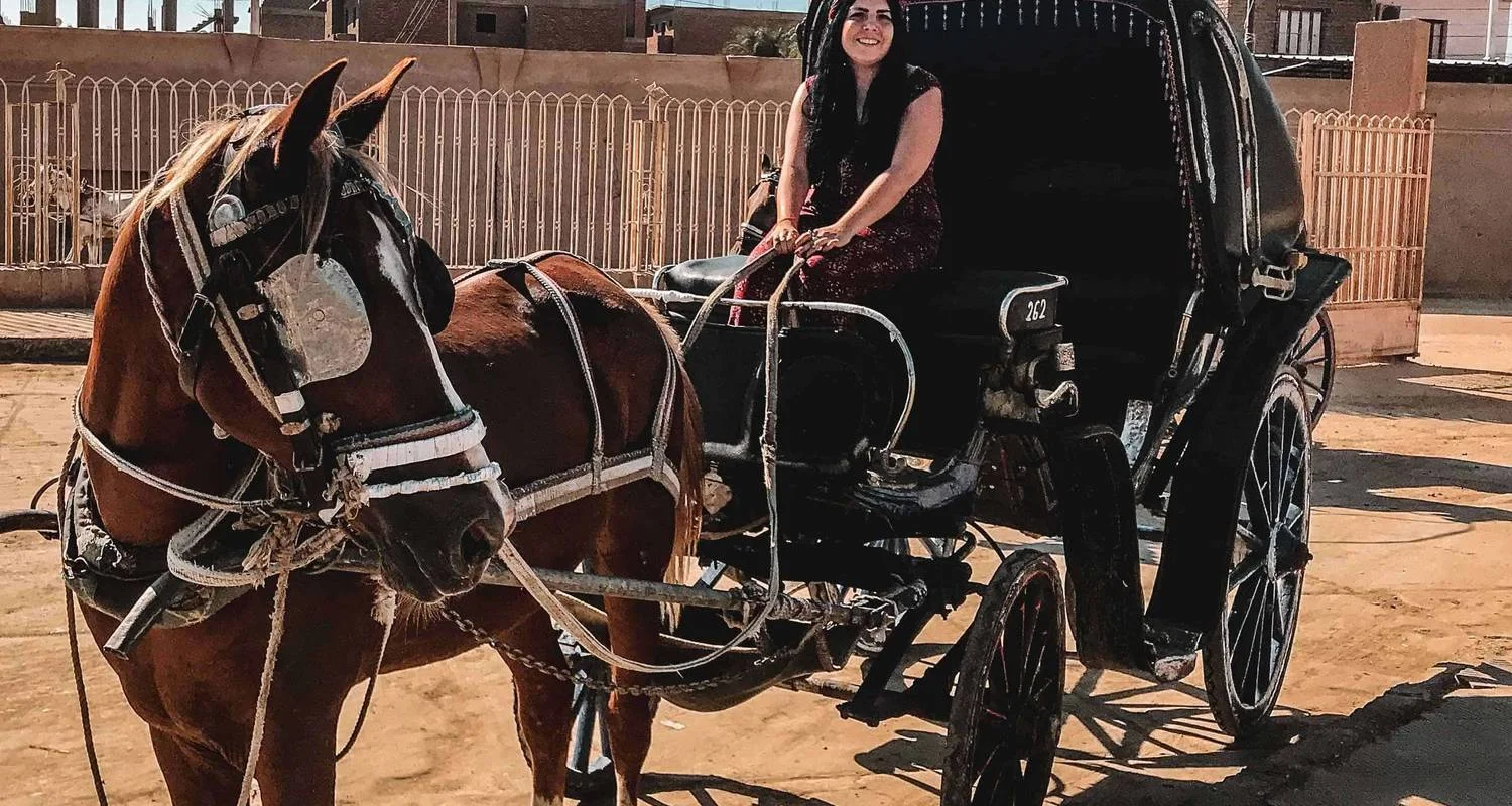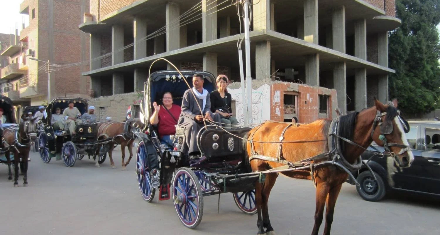 Según la hora solicitada, Booking2Egypt Tours te recogerá en tu hotel o crucero por el Nilo en Luxor. A continuación, subirás a un coche de caballos privado en el que podrás pasear libremente por la Cornisa del Nilo para explorar la verdadera vida de los egipcios en Luxor.