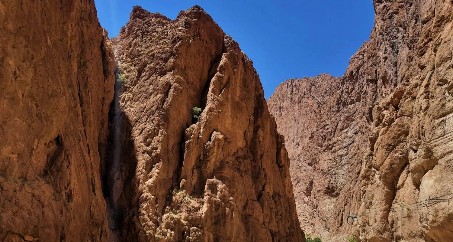 La salida comienza con la recogida a las 08:00 h, y comenzarás un viaje de 3 días por el desierto desde Marrakech hasta las Gargantas del Dades, atravesando el paso del Atlas de Tizi-n-Tichka, con vistas de gran alcance sobre las montañas, hasta los fabulosos pueblos bereberes del Alto Atlas. A continuación, visitarás el sitio declarado Patrimonio de la Humanidad por la UNESCO y almorzarás en uno de los restaurantes situados a los pies de la Kasbah, después nos dirigiremos a las Gargantas del Dades a través de Skoura y el Valle de las Rosas, pasarás la noche en una kasbah tradicional en las Gargantas del Dades.