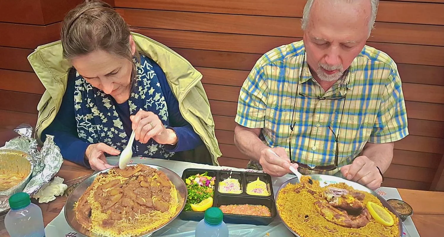 Desayuno en tu hotel. Comenzaremos nuestro recorrido con una visita al Museo Abdul Raouf Khalil, que presenta el patrimonio local y árabe. Un lugar único. A continuación nos adentraremos en la antigua Yeda. Disfrutaremos de un maravilloso paseo por Al-Balad, la parte antigua de la ciudad. Este recorrido a pie por la Ciudad Vieja te llevará por todos los lugares menos conocidos de visita obligada: joyas ocultas del Mercado Viejo, galerías ocultas de la Ciudad Vieja, comida local de Jeddah sólo para lugareños... Durante la visita a Al-Balad, te llevaremos a ver Beit Nassif, una de las estructuras renovadas más destacadas de la Ciudad Vieja, que data de mediados del siglo XIX. El edificio de cinco plantas ofrece a los visitantes una oportunidad única de experimentar la mezcla de arquitectura tradicional y modernidad. Veremos también la casa Bagdadi. Visitaremos también el Antiguo mercado del oro en la calle Gabel y la Mezquita Ukash. Pasaremos por la Mezquita Al Rahmah. Después, visitaremos La Mezquita Flotante, esta maravilla arquitectónica de una sola cúpula que se asienta literalmente sobre el mar, simboliza la audaz irrupción de Yeda en la era moderna. Situado en un lugar envidiable, el patio de la mezquita ofrece vistas despejadas del Mar Rojo. Nuestro recorrido terminará en la Cornisa de Yeda, que es la zona turística costera de 30 km de la ciudad de Yeda. Situada junto al Mar Rojo, la cornisa cuenta con una carretera costera, zonas de recreo, pabellones y esculturas cívicas a gran escala, así como la Fuente del Rey Fahd, la fuente más alta del mundo. Pasa la noche en Jeddah .