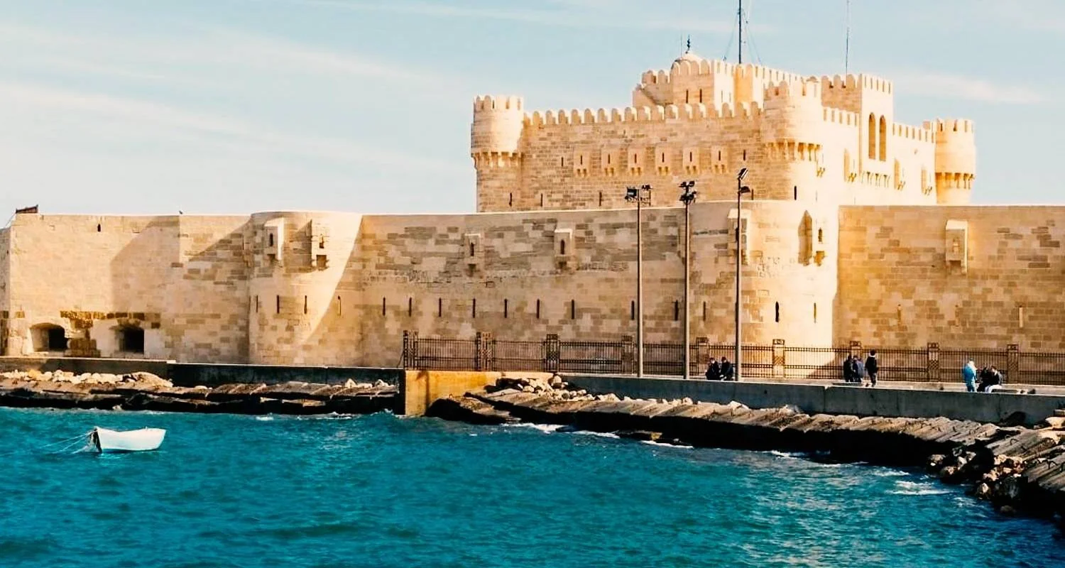 Desayuna temprano, tu guía se reunirá contigo en el vestíbulo del hotel y te trasladará a Alejandría en un coche de lujo. Comienza tu viaje visitando la Columna de Pompeyo, seguida de una visita a las misteriosas Catacumbas de Kom El-Shoqafa. Estas antiguas tumbas están divididas en tres niveles, que contienen el Triclinio, donde los familiares solían sentarse en bancos de piedra para celebrar un banquete en honor de los muertos. En el interior de las catacumbas, hay estatuas de Sobec y Anubis con armaduras romanas que datan del siglo II d.C. Después visitarás Elshawary, la Biblioteca de Alejandría. También visitarás la Ciudadela de Qaitbayen Alejandría, considerada una de las fortalezas defensivas más importantes, no sólo de Egipto, sino también de la costa del mar Mediterráneo. Formó parte importante del sistema de fortificación de Alejandría en el siglo XV d.C. Almorzarás en el famoso restaurante frente al mar.(Restaurante del Mercado de Pescado o Similar), al final del día regresa a tu hotel en El Cairo.