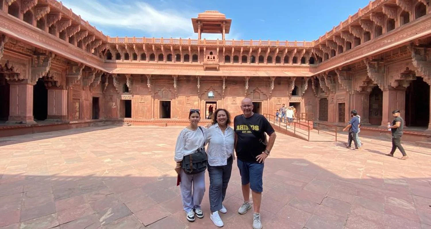 Si llegas a Agra con tiempo de sobra y te apetece, tendrás la opción de explorar el histórico Fuerte de Agra, una gran fortaleza mogol conocida por su impresionante arquitectura y su pasado real. De lo contrario, te dirigirás directamente a tu hotel para registrarte y pasar una noche tranquila. No hay visitas turísticas programadas para el resto del día, lo que te dará tiempo para relajarte y reponer fuerzas antes de tu visita matutina al Taj Mahal el Día 2.