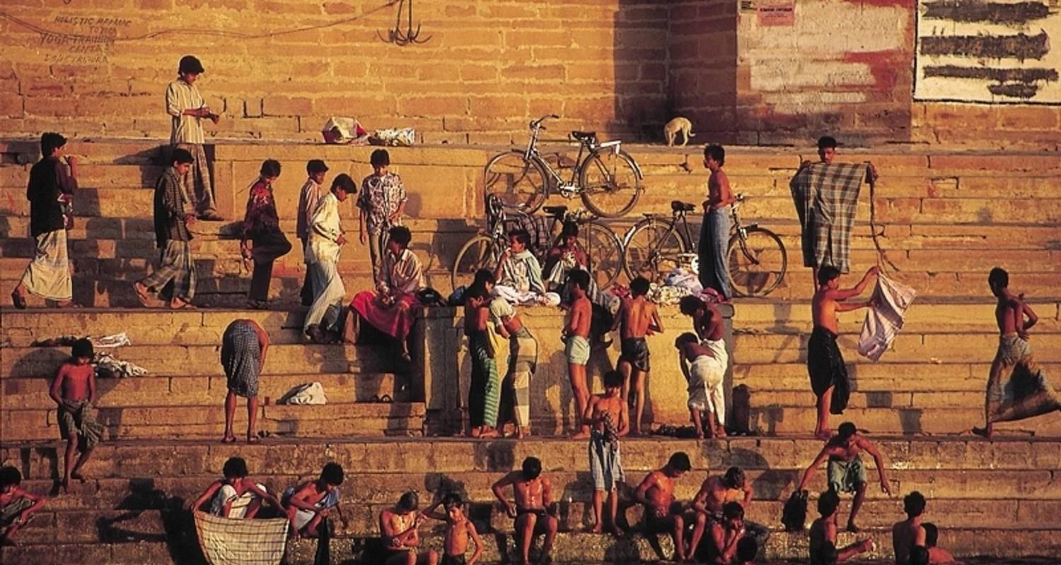 Paseo en barca por el Ganges al amanecer, visitando los ghats de baño; tarde libre; presencia una ceremonia aarti nocturna (desayuno)