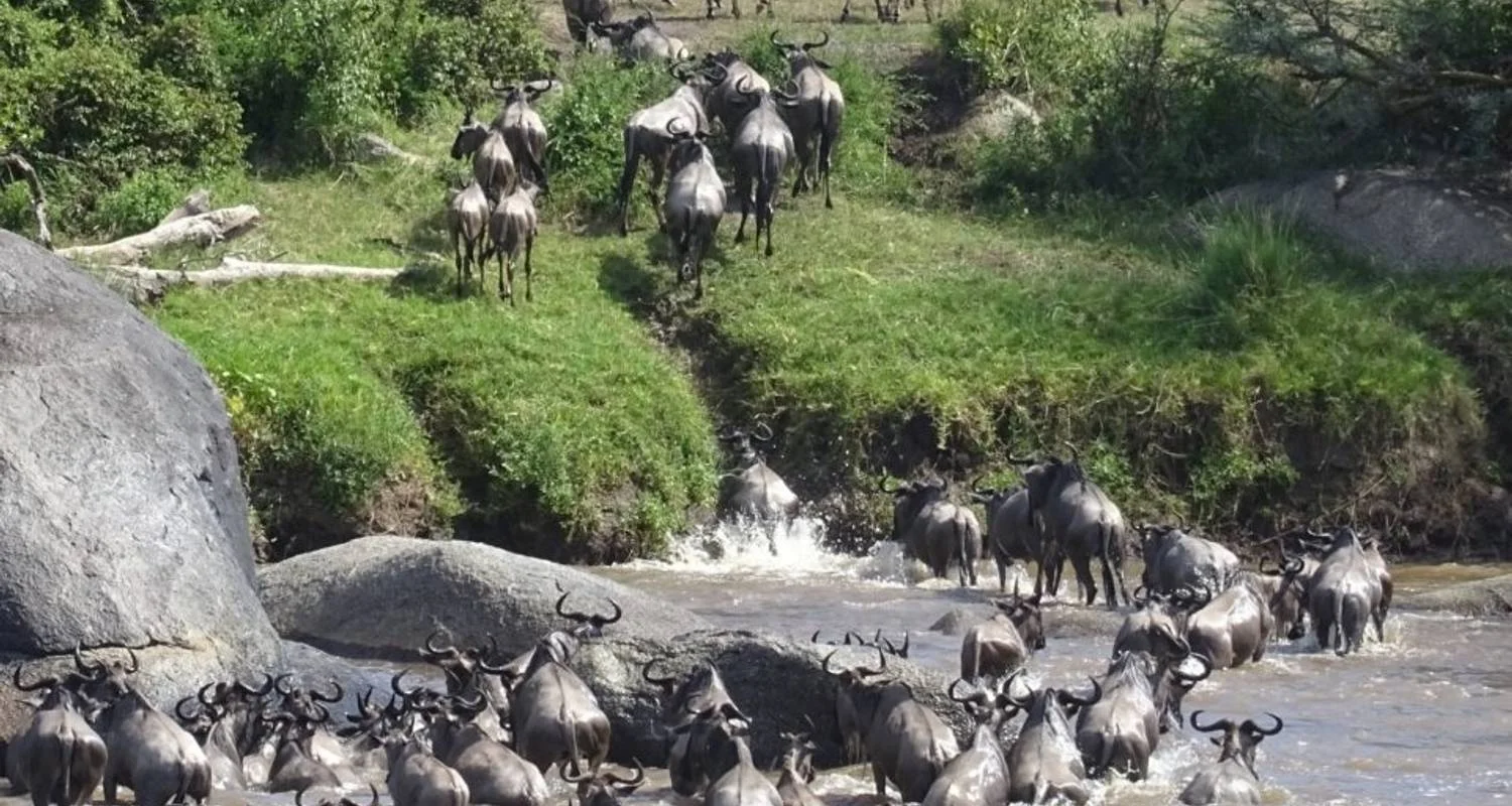 Este es el paquete de safari de 10 días por la migración de los ñus y el cruce de ríos, Tu safari te llevará al Parque Nacional de Tarangire, el hogar de los elefantes africanos. Después visitarás el Cráter del Ngorongoro y las interminables llanuras del Serengeti. Por último, irás al río Mara, donde podrás capturar millones de ñus migrando al cruzar el río. Durante el Safari de la Migración de los Ñus Las llanuras del Serengeti ofrecen un entorno ideal para el cruce de los ñus. Los pastos son exuberantes y abundantes, lo que proporciona una nutrición excelente a las crías recién nacidas antes de la Migración. Además, el paisaje abierto permite a las madres ñus divisar posibles peligros y depredadores, como leones, hienas y guepardos, que se ven atraídos a la zona por la abundancia de presas jóvenes vulnerables durante la Migración. El recorrido del Safari de 10 Días por Tanzania en migración de ñus comenzará en Arusha y terminará en el Aeropuerto.