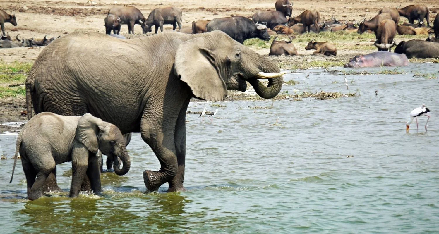 Después de comer, únete al crucero en barco por el canal Kazinga para disfrutar de una tarde de avistamiento de animales salvajes. Verás cocodrilos, búfalos, elefantes y una gran variedad de especies de aves en las aguas del canal. Cena y alojamiento en el Parque Nacional Queen Elizabeth