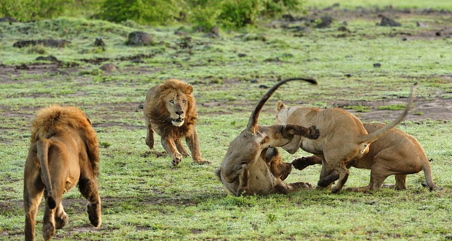 Levántate temprano por la mañana para realizar un safari y espera ver también animales nocturnos que vuelven de cazar y leones que se despiertan al amanecer. Un día completo de safari por el Serengeti. Puedes esperar ver ñus, leones, elefantes, jirafas, cebras, monos, babuinos, hipopótamos, rinocerontes, antílopes y muchas aves y otras especies.