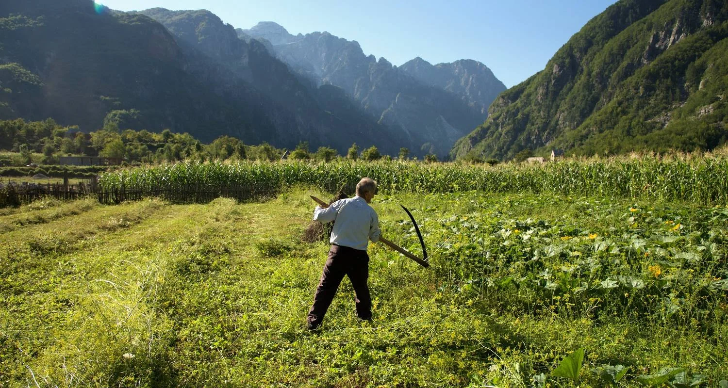 Comenzarás tu primer cruce fronterizo de los Picos Balcánicos hacia Montenegro. Esta intensa caminata de 15,8 km ofrece algunas de las vistas más impresionantes de la región. Después del desayuno, saldremos para cruzar la primera frontera con Montenegro. Nuestra caminata ofrece algunas de las vistas más impresionantes de la región, pasando por varios lagos glaciares y fuentes de agua. Seguimos hacia Lugu i Shkodres y el paso de Jelenka, que es también el punto fronterizo entre Kosovo y Montenegro. Después de comer, el descenso nos llevará al Parque de Babino Polje, habitado principalmente por pastores. Tendrás la oportunidad de recolectar arándanos cultivados de forma natural. Este día terminará con un traslado en coche al pueblo de Gusinje. Cena y alojamiento en Gusinje. (D, A, C)