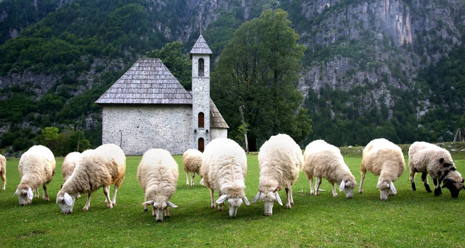 Tras un corto trayecto en coche hasta Ropojan, empezaremos a caminar desde el lago Gjeshtari. Éste es también un punto fronterizo entre Montenegro y Albania. La caminata continúa a través de un bosque hasta que aparece ante nosotros el imponente valle de Rrunica. Luego seguimos hacia el paso de Peja, donde también veremos el lago helado de Peja. Desde allí se desciende a Theth por un camino histórico que sigue los bosques de coníferas y la ladera de la montaña. Los mercaderes utilizaban esta ruta en la época medieval. Cena y alojamiento en Theth. (D, A, C)