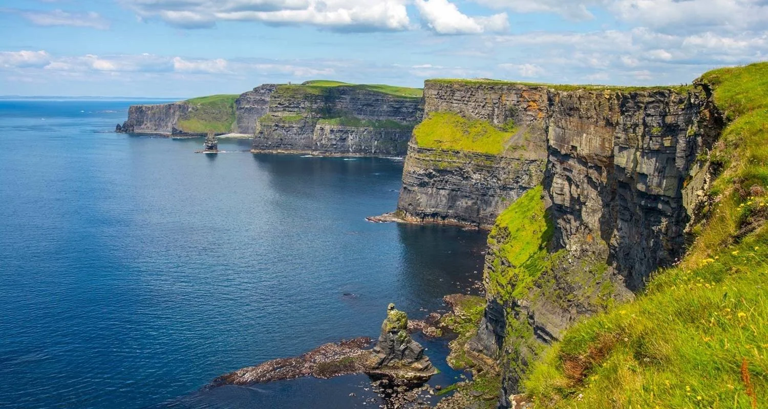 Tras disfrutar de un delicioso desayuno en el hotel, embárcate en un viaje panorámico hacia el Burren y los emblemáticos Acantilados de Moher. La región de Burren, una región extraña y única en Europa. "Burren" significa "grandes piedras"; de hecho, su nombre describe perfectamente este impresionante paisaje. El Burren es una altiplanicie de piedra caliza porosa. Aquí no crecen árboles ni hay tierra que cubra la piedra. Pero el Burren no está tan desierto como creemos. También descubrirás los testimonios de su rica historia, como innumerables castillos y ruinas monásticas. Los acantilados más majestuosos de Irlanda y se elevan desde el océano Atlántico a 705 pies y se extienden por más de 2300 pies de largo. Desde esta altura, puedes admirar las islas Aran, las montañas de Connemara y escuchar a las numerosas aves marinas que colonizan este lugar desde la primavera. Los Acantilados de Moher son acantilados marinos situados en el extremo suroccidental de la región de Burren, en el condado de Clare, Irlanda. Se extienden a lo largo de unos 14 kilómetros. Maravíllate con las impresionantes vistas y la escarpada belleza de los acantilados, una de las atracciones naturales más famosas de Irlanda. Tras la excursión, dirígete a los suburbios de Dublín para un cómodo traslado. La aventura del día concluye con una relajante llegada a tu hotel, listo para desconectar y reflexionar sobre las espectaculares vistas del día.