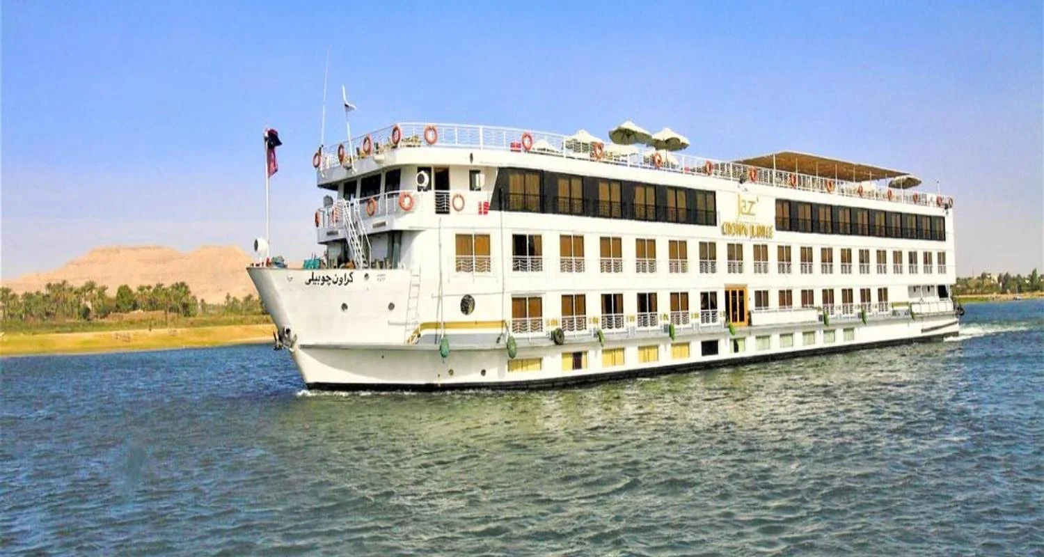 4 noches de alojamiento a bordo de un crucero de 5 estrellas por el Nilo de Luxor a Asuán, con pensión completa sin bebidas y camarotes con aire acondicionado e instalaciones privadas