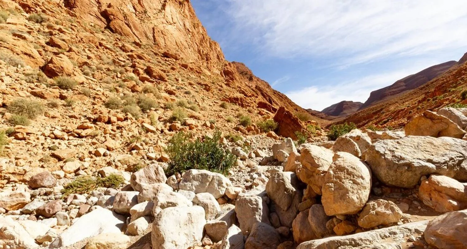 Por la tarde, cruza el puerto de Tizi n'Talghamt hasta Errachidia, con impresionantes vistas de las Gargantas del Ziz. Detente en un mirador panorámico con vistas al exuberante valle del Ziz, y continúa por Aoufous y Erfoud, conocido por sus fósiles y palmeras datileras (con la opción de visitar un taller local de fósiles).