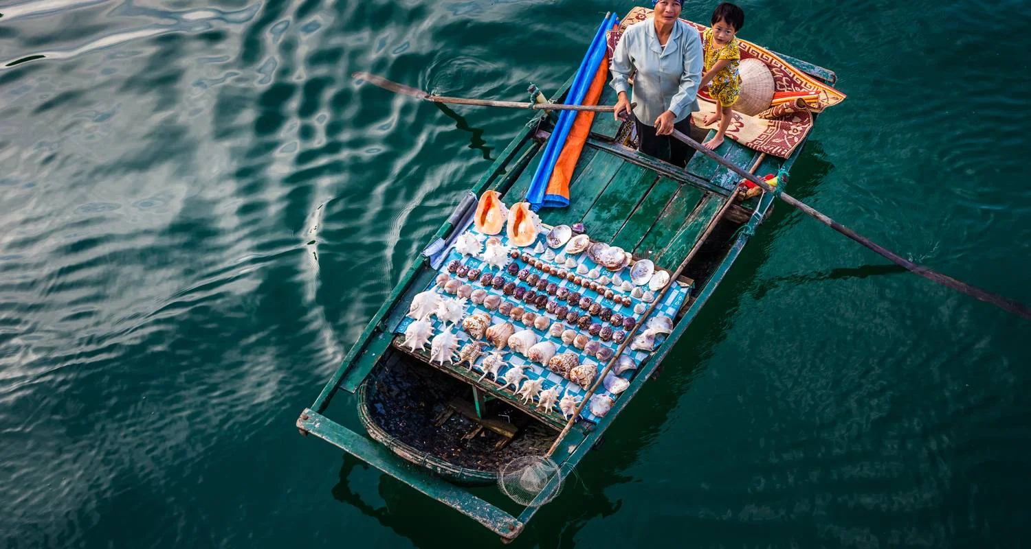 After breakfast, guests are transferred by shuttle bus to the enchanting Ha Long Bay to board a traditional junk boat and set sail through this UNESCO World Heritage site. A speedboat will take you to your cruise ship, welcoming you with a refreshing drink and a comprehensive cruise briefing. As you cruise through the stunning Lan Ha Bay, you can savour a delicious lunch featuring authentic Vietnamese cuisine.