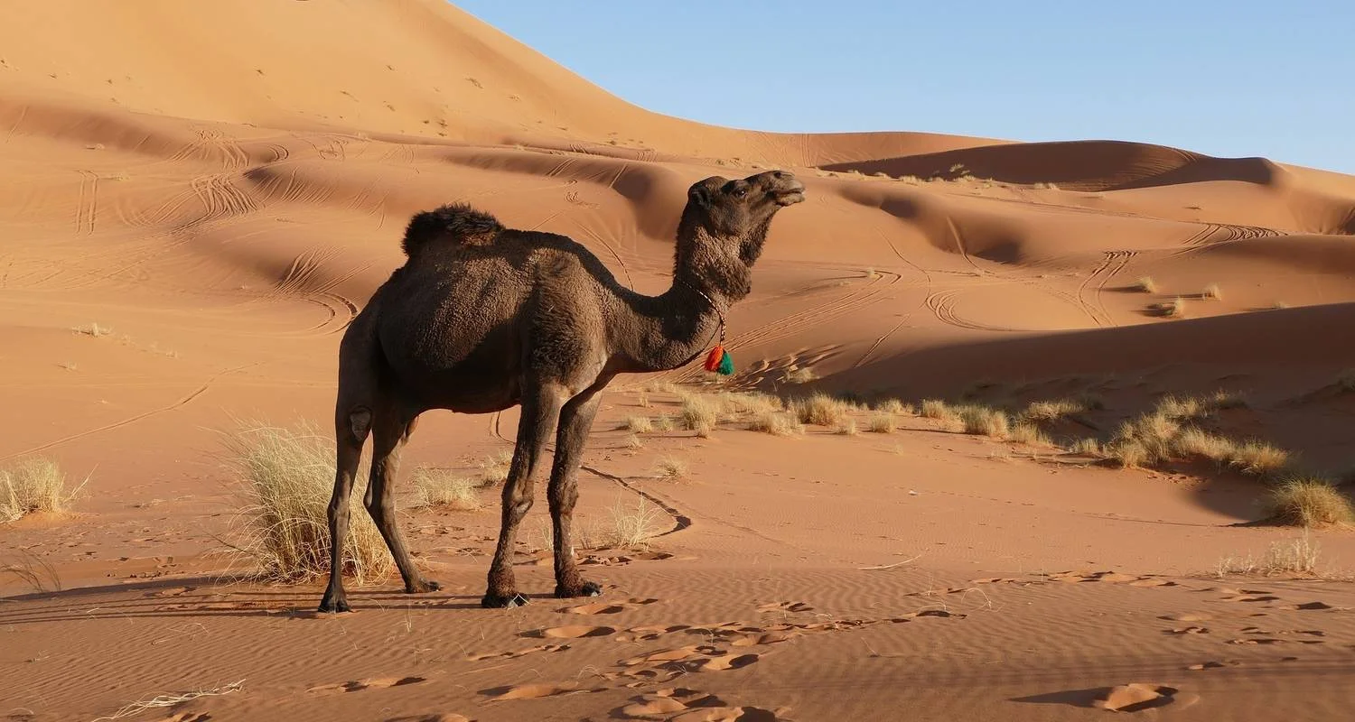 Une randonnée d'une journée à dos de chameau dans les plus hautes dunes du désert du Sahara au Maroc offre un bref aperçu de la vie nomade. Mais vous pouvez également opter pour une excursion d'une demi-journée en 4×4 autour des dunes jusqu'au village de Khamlia. Vous pouvez également vous détendre dans le camp en lisant votre livre préféré.