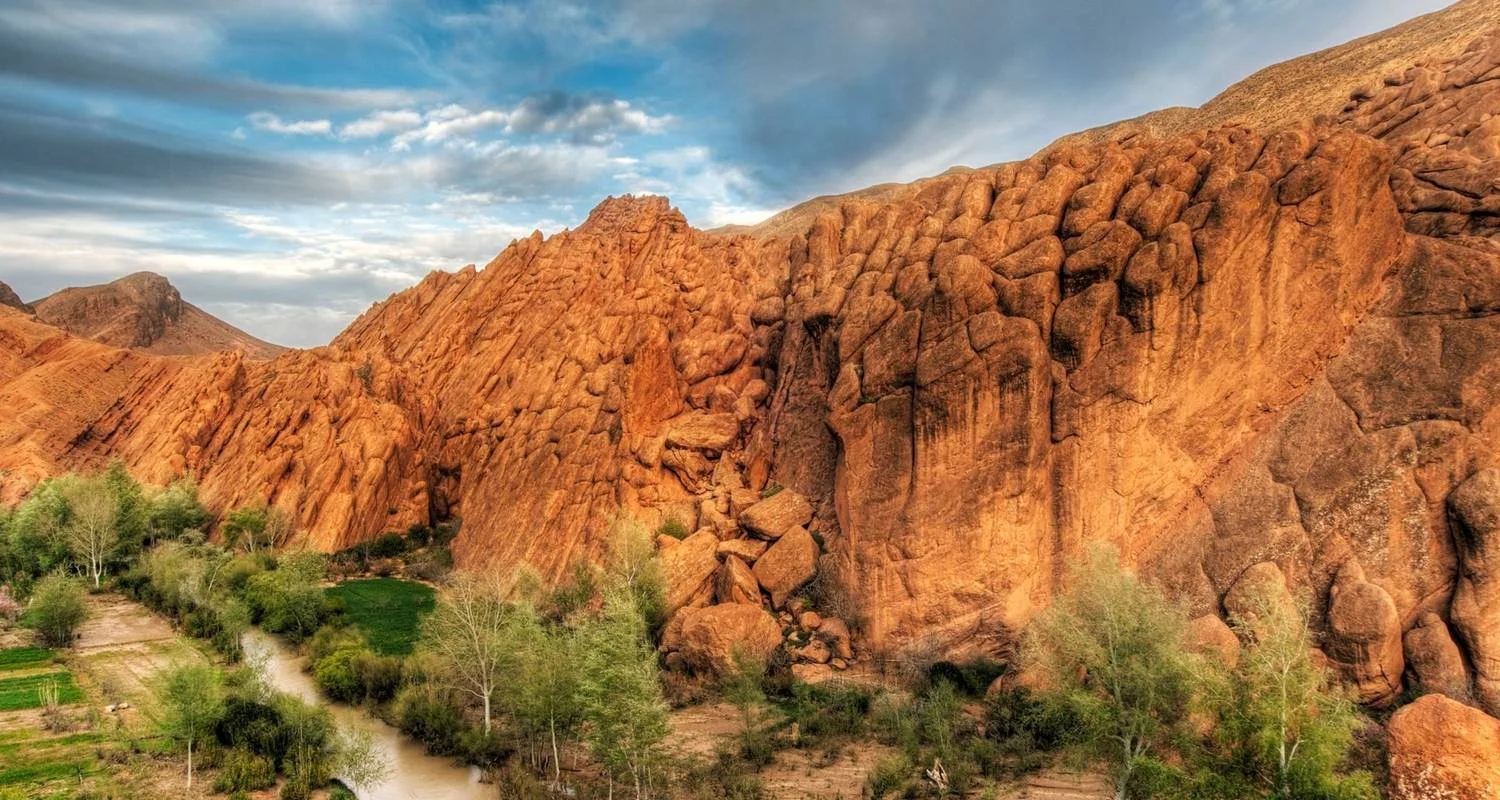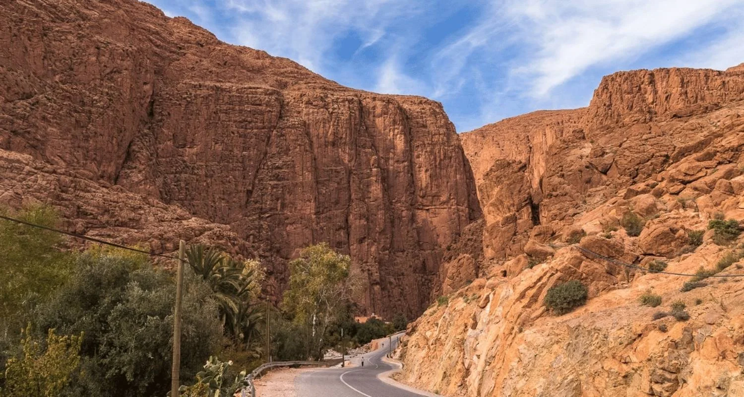 Assistez à l'impressionnant lever de soleil sur les dunes du désert. Regardez les rayons dorés du soleil peindre le ciel de teintes vibrantes, jetant une lueur chaleureuse sur le vaste paysage désertique. Après le petit-déjeuner, nous partirons pour les gorges de Todgha, connues pour leurs imposantes parois de canyon et leur rivière cristalline. Promenez-vous dans les gorges étroites et laissez-vous émerveiller par la beauté et l'immensité de l'environnement.