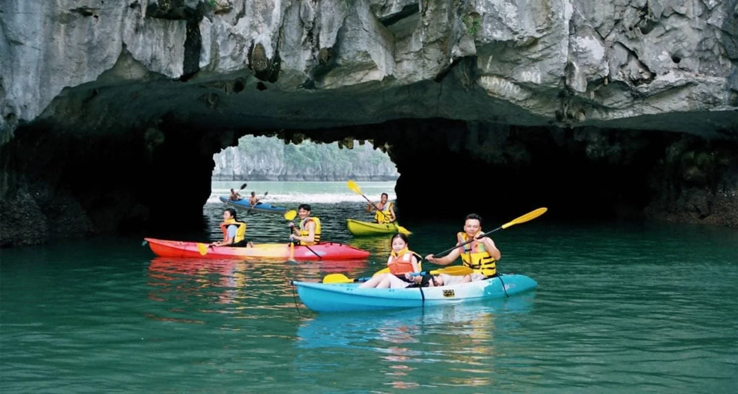 15:00    Kayaking around Pearl Farm Village, visit Titop Island. Free choice of activities such as sunbathing, swimming and conquering the peak of the biggest island in Halong and taking panoramic photos of Halong bay in the afternoon.
