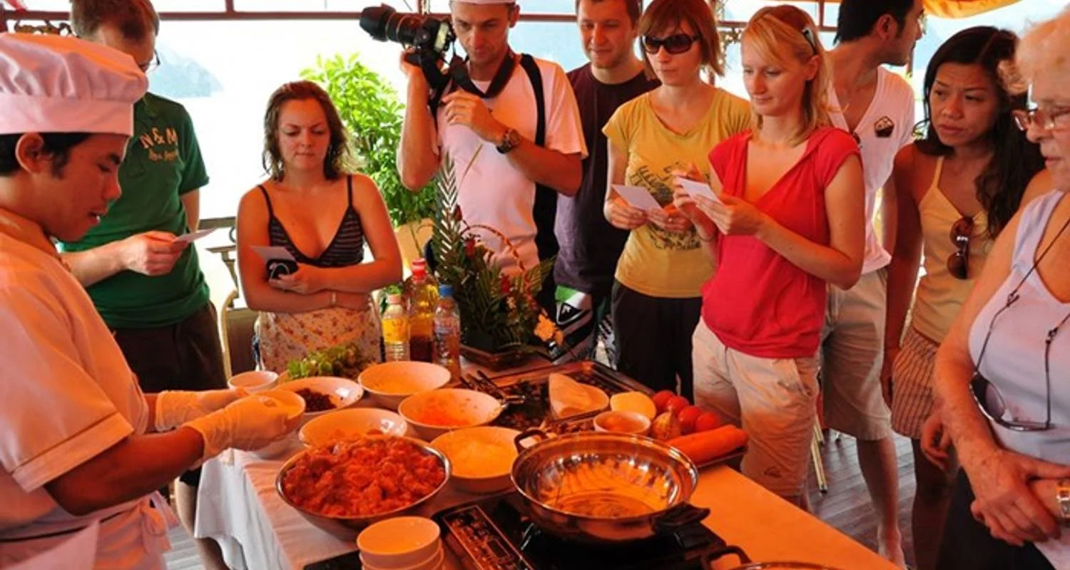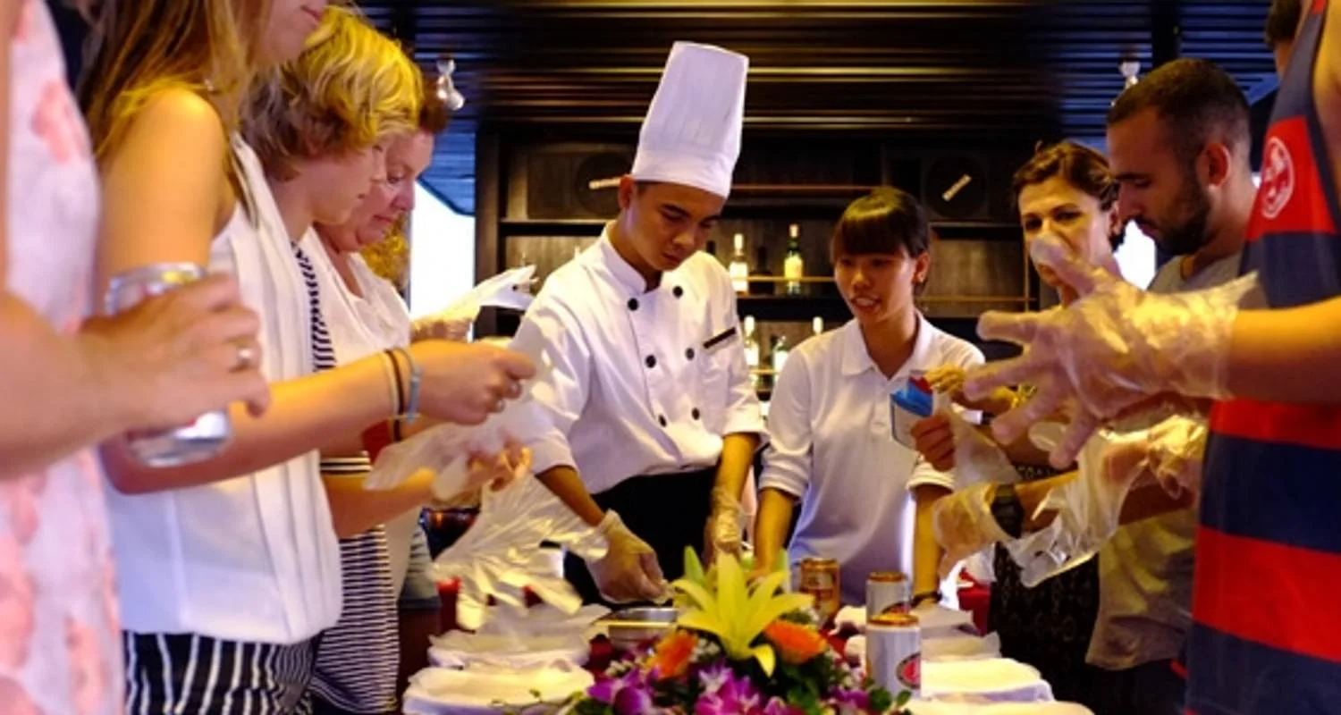 18.00    Cooking Class. Our Chef will demonstrate the preparation of a particular Vietnamese cuisine in the dining room. Our guide will let you know what item will be prepared and will explain the process during the demonstration. Duration about 20 – 30 minutes