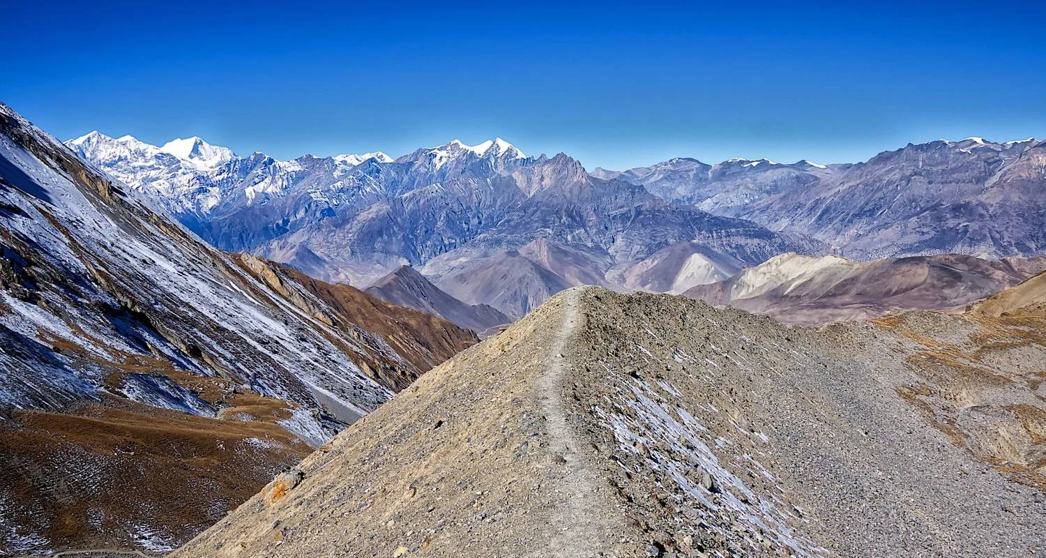 The trek from Thorong Phedi to Muktinath via Thorong La Pass is an arduous yet incredibly rewarding adventure in the Annapurna region of Nepal. Starting from Thorong Phedi, you'll embark on a steep and challenging ascent towards Thorong La Pass, which stands at a formidable elevation of 5,416 meters (17,769 feet). The trail takes you through rocky terrain and snow-covered paths, testing your endurance and determination. However, the moment you reach the pass's summit, you're rewarded with unparalleled panoramic views of the surrounding Himalayan peaks. From there, the descent towards Muktinath offers a dramatic change in landscape, as you journey through arid and windswept terrain, eventually reaching the sacred village of Muktinath, renowned for its religious significance among both Hindus and Buddhists. The trek is a true test of one's physical and mental strength but offers an experience of a lifetime in terms of natural beauty and cultural immersion.
