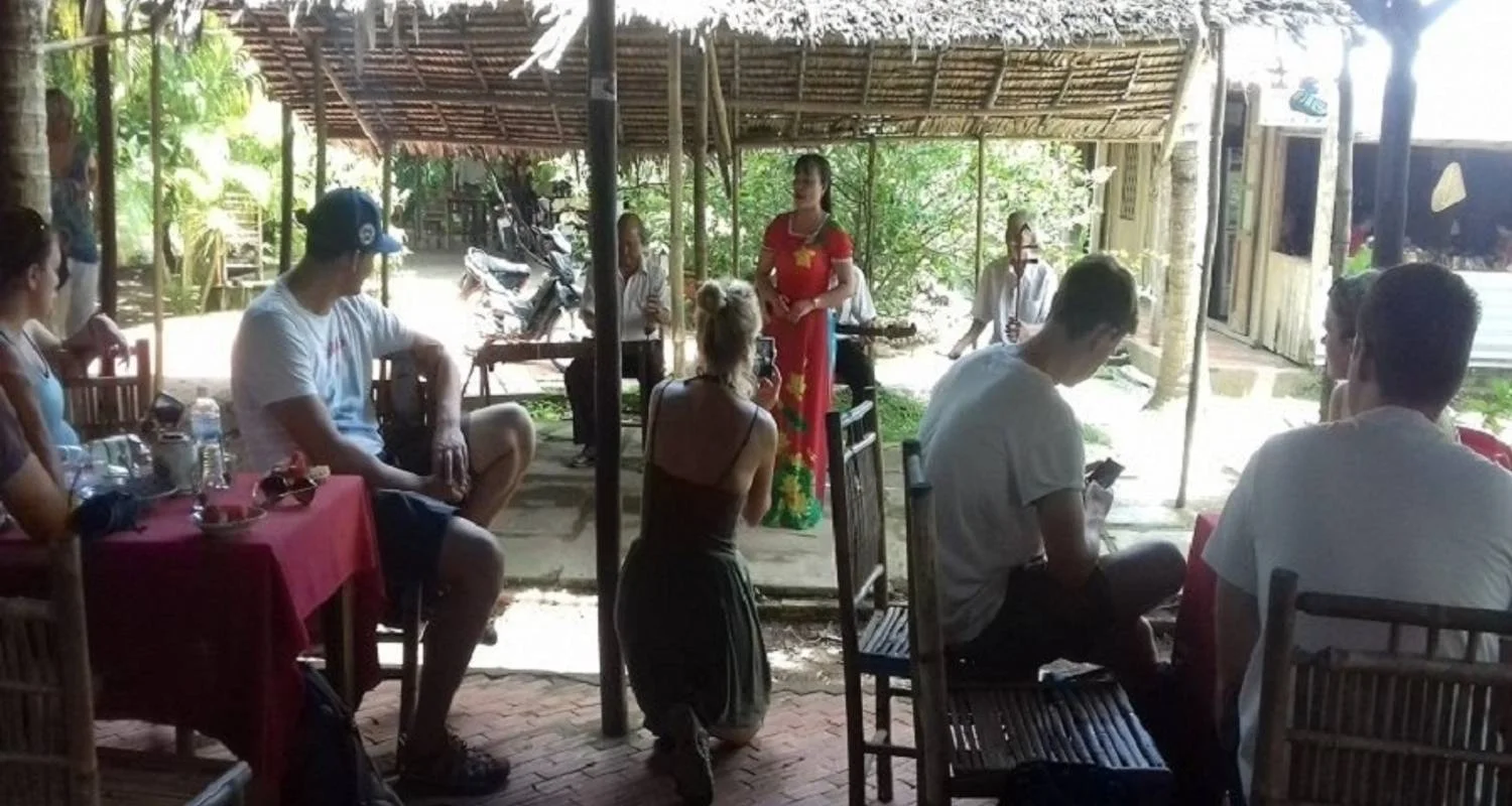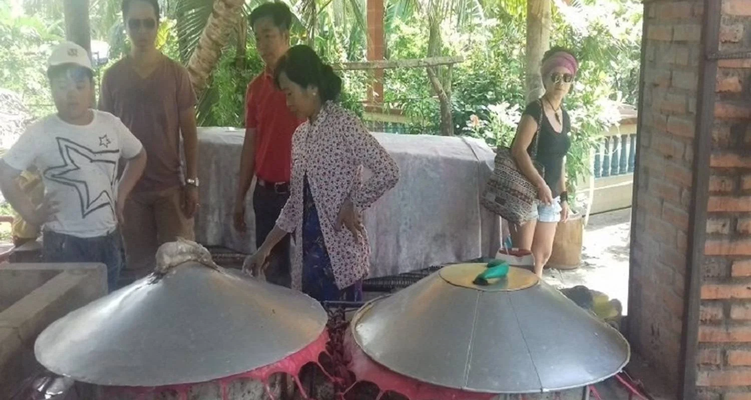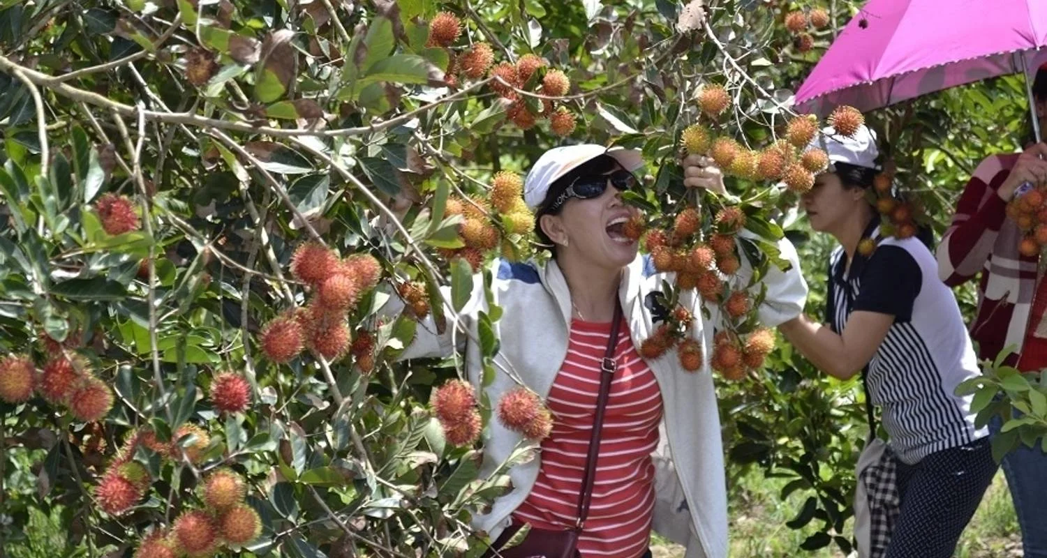 Reis vervolgens per boot naar het toeristische gebied Con Son om de fruitplantage te bezoeken en te genieten van seizoensfruit.