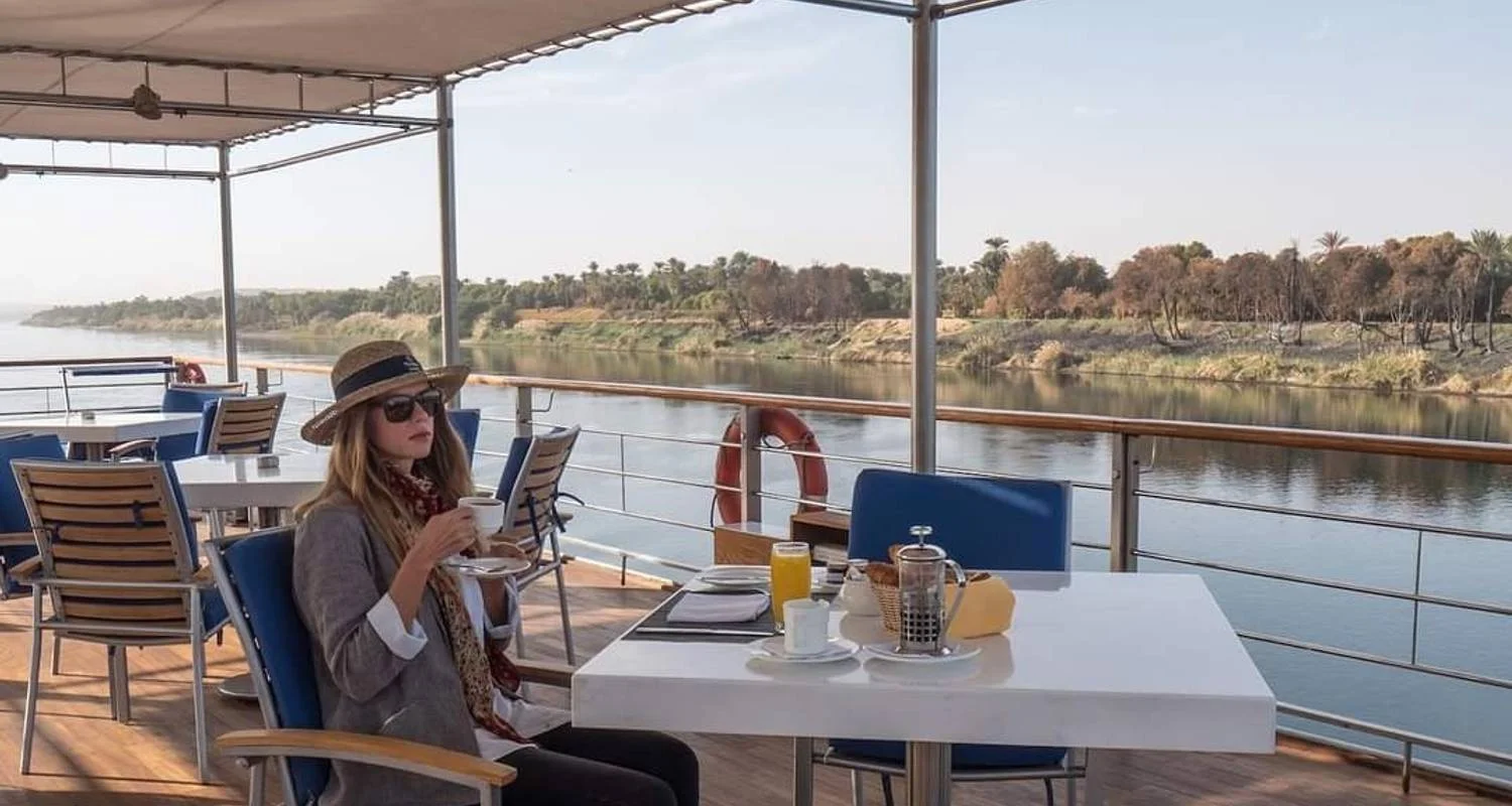 Egypt Gift Tours Egyptologie gids haalt je op bij je Aswan hotel, treinstation of vliegveld om in te checken in de cruise. (deze ochtend is het mogelijk om de optionele tour naar Aswan Highlights; Philae tempel en de Hoge Dam toe te voegen tegen extra betaling)