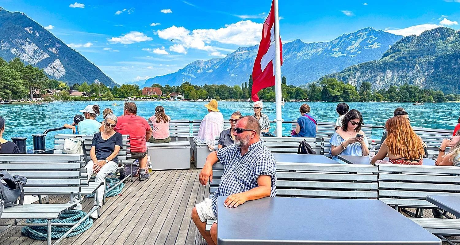 ►  After soaking in the magnificent views from Harder Kulm, you can head to Interlaken West Boat Station, within short walking distance from Interlaken West train station, then board a boat for a scenic cruise on Lake Thun. After the cruise, you can return to Interlaken by train, approximately 30 minutes.