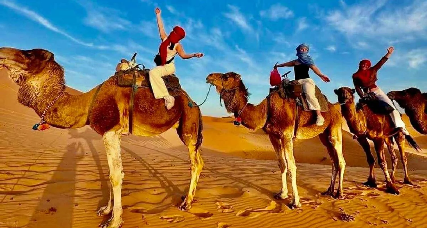 Morocco Best 3 Day Desert Tour from Marrakech to the Merzouga Sahara typically involves traveling through the High Atlas Mountains, visiting Ait Ben Haddou Ksar, exploring the Dades Valley and Todra Gorges, and experiencing a Camel Ride at sunset to a desert camp for an overnight stay under the stars. The Morocco desert tour includes transportation, accommodation in a hotel and a desert camp, and meals, with the return trip to Marrakech on the final day.
