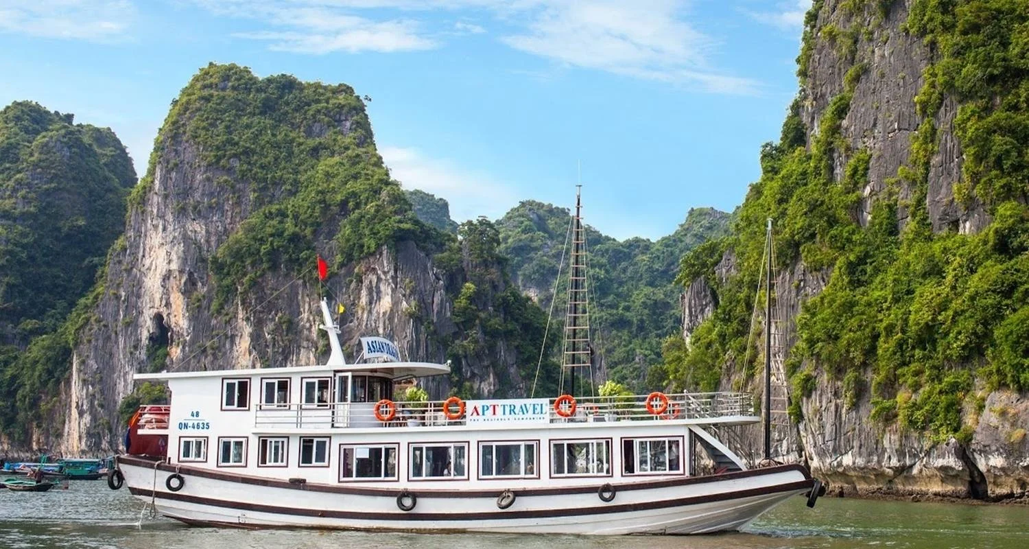 • 15:30 - Small tender brings you to visit Titop island, hiking to the top of the island from where tourists can capture a panoramic view of Halong Bay.